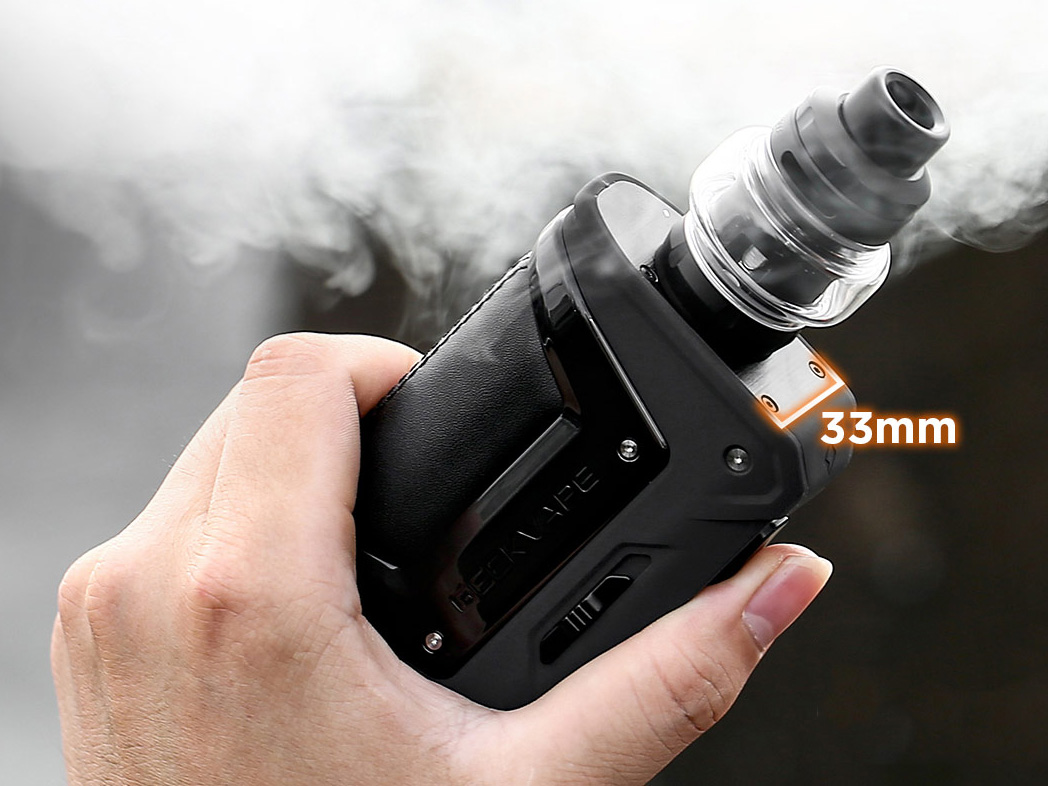 24 октября компания GeekVape представила на странице в фейсбуке стартовый набор — L200 Classic Kit. Новый боксмод получил массивный цинковый корпус в классическом стиле серии Aegis с эргономичными формами и универсальной защитой по стандарту IP68 от ударов, воды и грязи. Тыльную сторону и торцы украсили традиционной вставкой с металлической рамой и прошитой кожей. На фасаде растянули привычную панель управления, собранную из кнопки fire, цветного дисплея и регулировочной клавиши. USB-порт разместили сверху, под герметичной заглушкой. Сбоку предусмотрели ползунок, отвечающий за блокировку. Доступ к аккумуляторному отсеку ограничили откидной крышкой с защелкой. Посадочную площадку обеспечили солидным запасом в 33 мм.