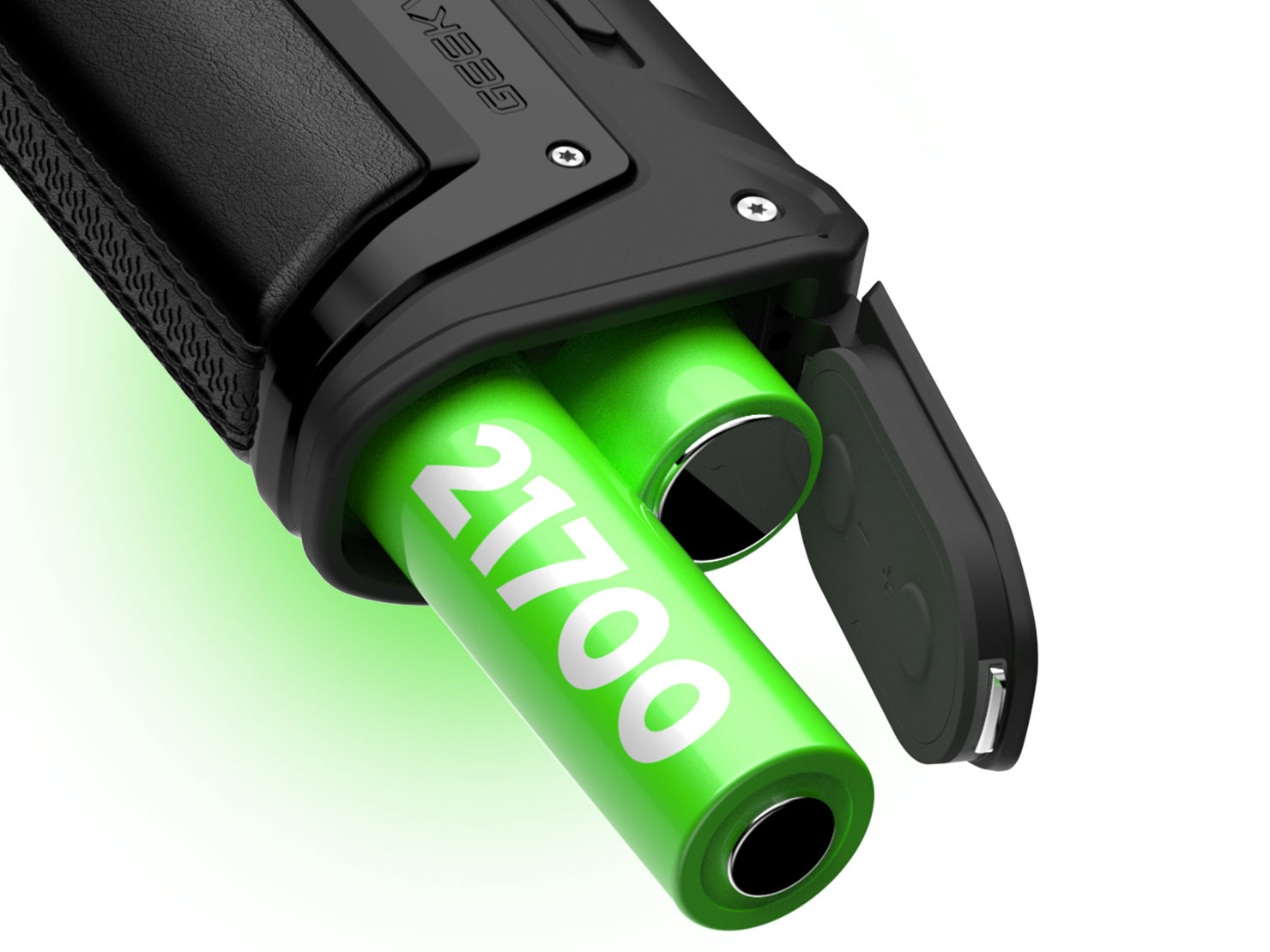 За надежным бронированными стенками скрывается вариативная плата с информативным цветным интерфейсом и максимальной выходной мощностью в 200 ватт. Помимо того, работу можно осуществлять в термоконтроле, Bypass и режиме с настройкой кривых предварительного нагрева. Сопротивление может варьироваться в диапазоне от 0,1 до 3,0 Ом. В качестве источника питания потребуется пара внешних аккумуляторов формата 21700, 20700 либо 18650. Для последнего предусматривается адаптер.