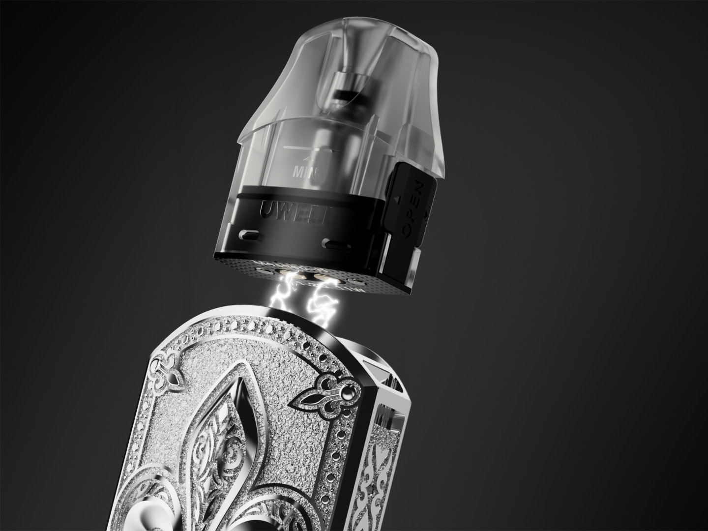 Компания Uwell выпустила Sculptor Pod Kit. Это нетривиальная под-система с экстравагантным рельефным корпусом, длинной цепочкой и парой сменных картриджей.