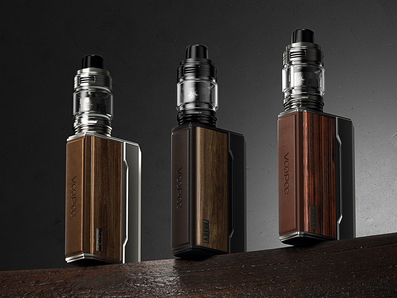 28 ноября компания Voopoo представила в инстаграме новый боксмод — Drag 4 Box Mod. Новоиспеченного потомка небезызвестной линейки облачили в угловатую прямоугольную форму с резкими гранями в знакомом стиле. В качестве основного материала избрали цинковый сплав. Широкие торцы и тыльную сторону украсили крупными панелями с разноцветной эпоксидной смолой либо имитацией дерева. В гамму расцветок включили шесть вариаций, отличающихся не только декоративными вставками, но и оттенками металлического каркаса. Угловатую лицевую сторону укомплектовали круглой кнопкой fire, цветным дисплеем, двумя клавишами регулировки, блокиратором и USB-портом. Посадочную площадку ограничили диаметром в 25 мм и сместили к задней стороне.