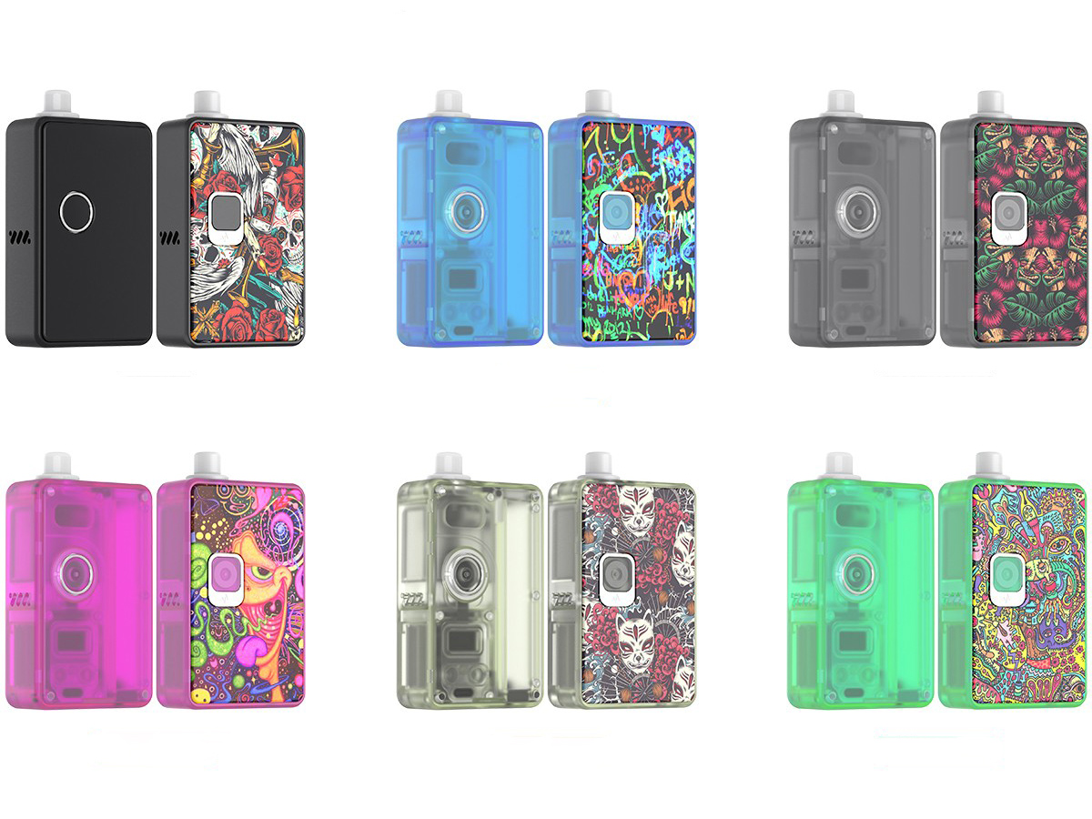 21 ноября компания Vandy Vape представила на странице в фейсбуке обновленный универсальный мод — Pulse AIO Mini Kit. Девайс упаковали в прямоугольную форму со скругленными углами и компактными габаритами. Основным материалом избрали легкий, но прочный поликарбонат Lexan EXL1414T. В гамму включили шесть вариаций, отличающихся не только цветами корпуса, но и дополнительными боковыми панелями с разнообразными оригинальными изображениями. Верхнюю площадку увенчали небольшим 510-м дриптипом со скручивающимся металлическим коннектором. Одну из широких боковин снабдили вариативной кнопкой активации. Там же спрятали аккумулятор, а также панель управления, собранную из дисплея, двух маленьких клавиш и USB-порта. На обороте разместили отсек с картриджем и вырезали воздухозаборные отверстия.