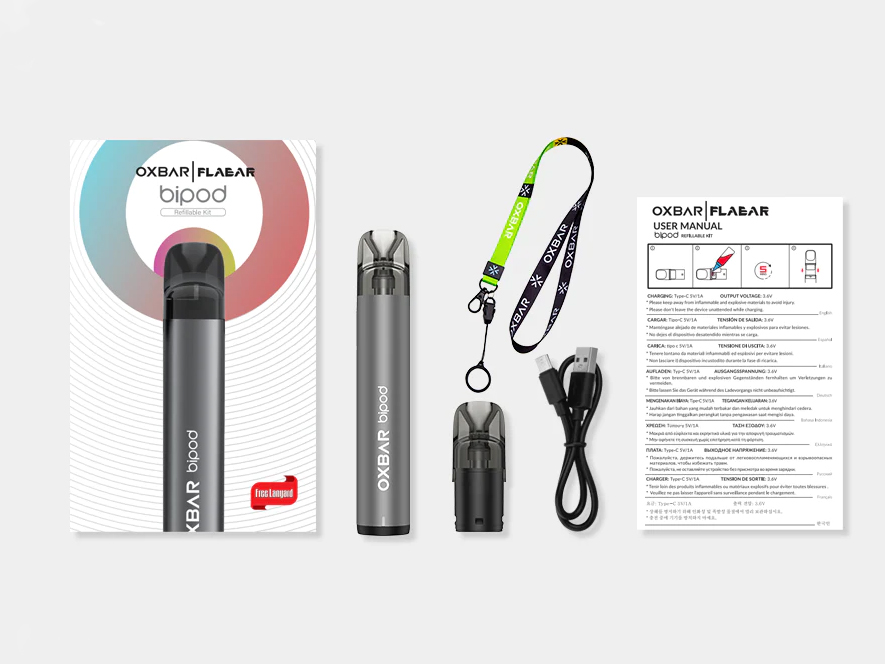 5 декабря компания OXBAR представила в инстаграме стартовый набор — Bipod Refillable Kit. Девайс обеспечили легким цилиндрическим корпусом, изготовленным из алюминиевого сплава в минималистичном стиле. На выбор предоставили не менее десяти расцветок. Кнопок и выделяющегося декора не предусмотрели, ограничившись лишь ненавязчивым контрастным логотипом на боковой стенке. Картридж наделили полупрозрачным корпусом с удобным приплюснутым дриптипом и зафиксировали при помощи магнитного коннектора. Срезанное дно укомплектовали зарядным портом и цветным индикатором. Для комфортной переноски предусматривается съемный темляк с кольцом.