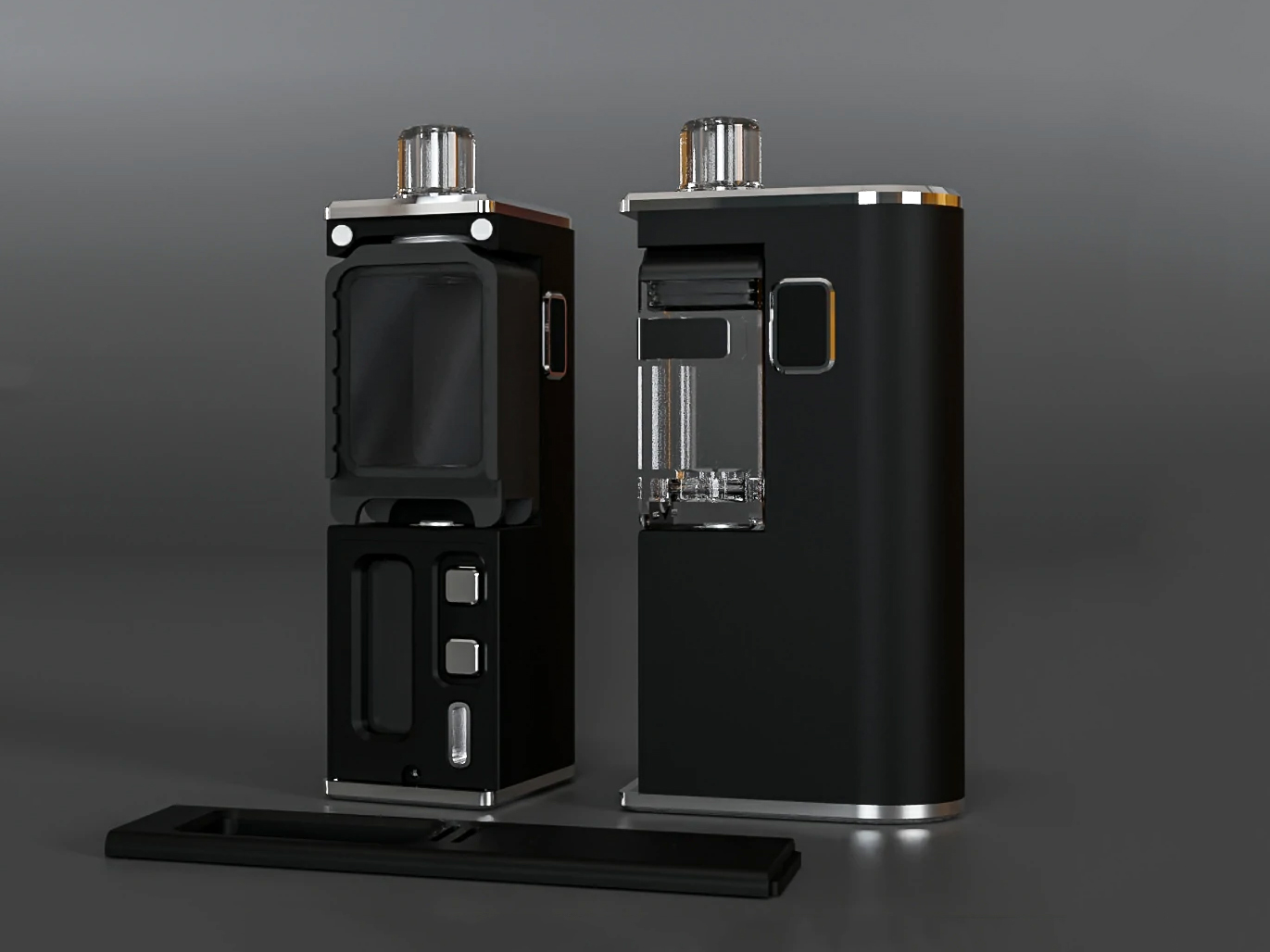 Девайс комплектуется платой VP60, располагающей лаконичным монохромным интерфейсом и диапазоном мощности от 1 до 60 ватт. Сопротивление может варьироваться в пределах от 0,08 до 3,0 Ом. Для питания можно использовать три формата аккумуляторов — 21700, 20700 либо 18650. Для универсального картриджа формата boro предусматриваются два сменных сеточных испарителя на 0,3 Ом и адаптер для альтернативных вариаций. Объем резервуара составляет 4 мл. Заправка производится через боковую стенку.
