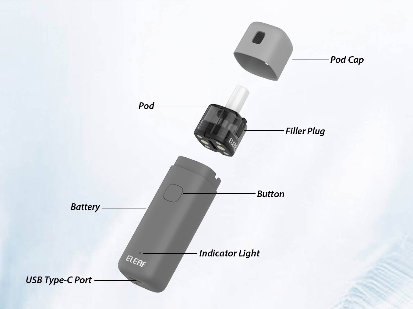 Компактное устройство может активироваться как по затяжке, так и при помощи кнопки. Минималистичная плата предусматривает стандартную систему безопасности и максимальную выходную мощность в 15 ватт. За питание отвечает емкий встроенный аккумулятор на 1000 мАч. Зарядка производится через USB Type-C током в 2А. Сменный картридж фиксируется при помощи надежного магнитного коннектора и комплектуется интегрированным испарителем на сетке с сопротивлением в 0,8 Ом. Бак вмещает 2 мл жидкости.