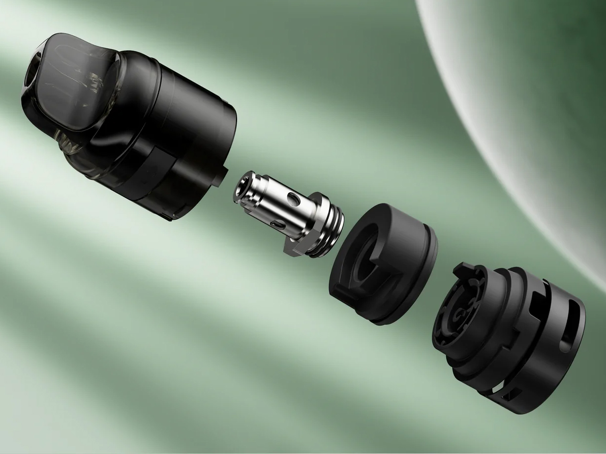 Компактное устройство активируется в процессе затягивания и выдает максимальную мощность в 10 ватт. За питание отвечает интегрированная батарея емкостью 400 мАч. Зарядка осуществляется через USB Type-C током в 0,35А. Сменный картридж обладает привычной конструкцией — стандартный резервуар на 2 мл, магнитный коннектор и встроенный испаритель на спирали с сопротивлением в 1,0 Ом. Помимо того, предусматривается версия с предварительно заправленным картриджем на 4 мл. На выбор предоставляется не менее десяти вкусов с концентрацией никотина в 5%.