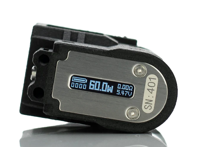 За безопасность и управление отвечает функциональна плата SX600J от компании YiHi. Все манипуляции осуществляются при помощи привычного монохромного интерфейса. Мощность регулируется в пределах от 1 до 60 ватт. Помимо того, можно переключиться на режим с кривыми предварительного нагрева либо температурный контроль. Диапазон доступного сопротивления составляет от 0,1 до 3,0 Ом. Источником питания выступает внешний аккумулятор формата 18650. Для быстрой зарядки током 2А и обновления прошивки платы предусматривается USB Type-C порт.