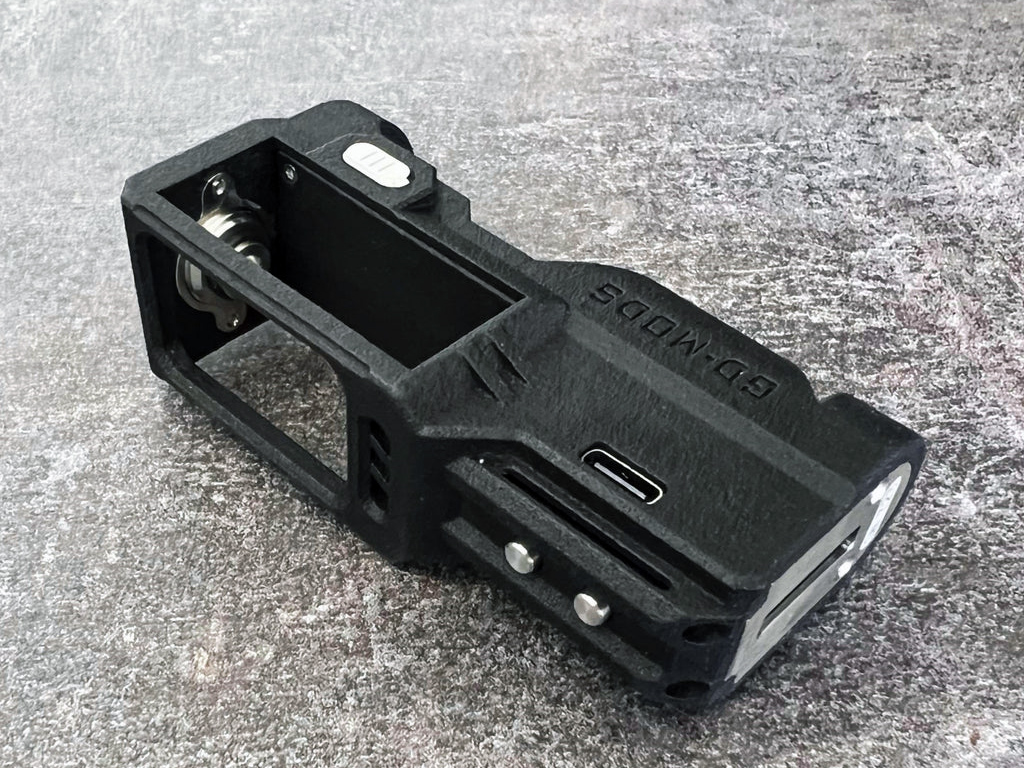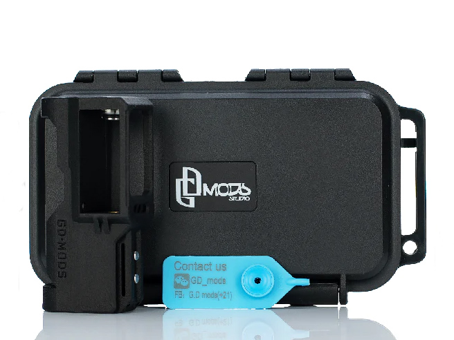 Компания GD Mods выпустила D.Box Mod. Мод получил компактный нейлоновый корпус под boro бак, плату от YiHi на 60 ватт и питание от батареи 18650.