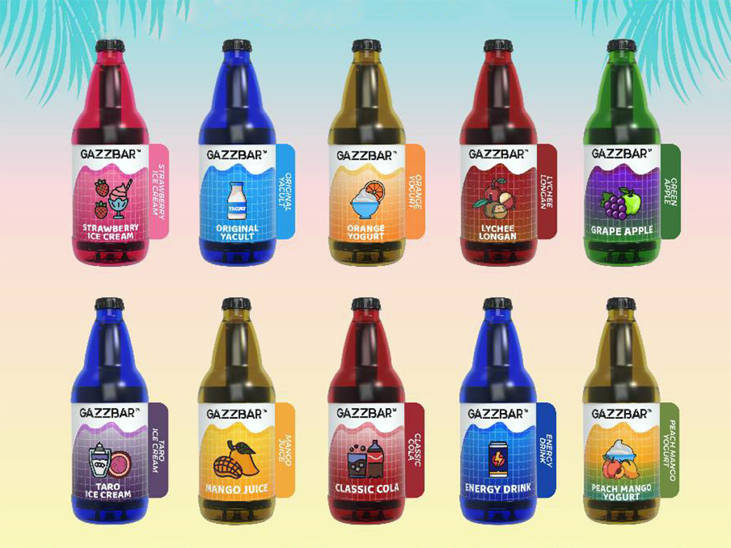 11 марта малазийская компания Vault Vape представила на странице в фейсбуке экстравагантное устройство — GAZZBAR Disposable Pod. Нетривиальной одноразовой под-системе дали яркий полимерный корпус в виде бутылки из под прохладительного напитка. Крупный мундштук оформили в виде горлышка и накрыли стилизованной крышкой. В палитру расцветок включили десять вариантов, каждый экземпляр обеспечили индивидуальной расцветкой и этикеткой. Кнопок не предусмотрели. На широком устойчивом дне разместили USB-порт и цветной индикатор заряда.