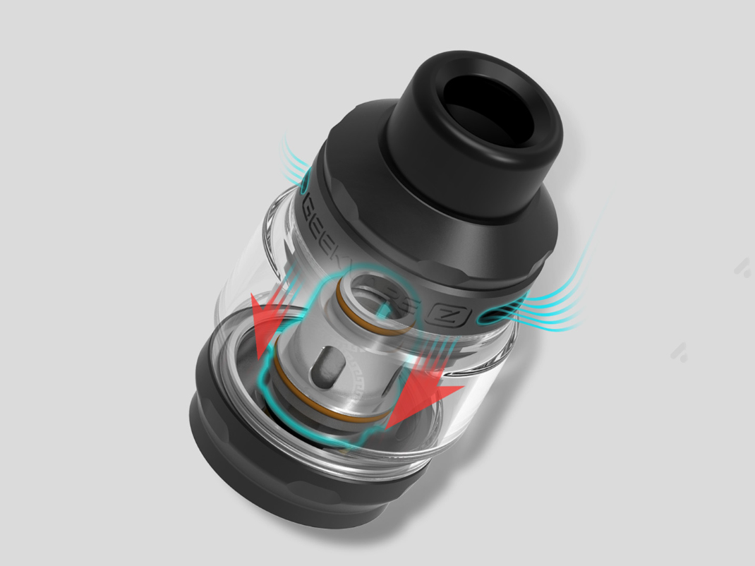 Компанию моду составляет необслуживаемый бак Z (Zeus) Sub ohm Tank с верхней системой забора воздуха, надежно защищающей от протечек. Внутри находится предварительно установленный испаритель из одноименной серии Z сопротивлением в 0,15 Ом. Кроме того, в резерве предусматривается альтернативный вариант на 0,4 Ом. Объем резервуара составит 5,5 либо 2 мл в зависимости от версии. Заправка — верхняя.