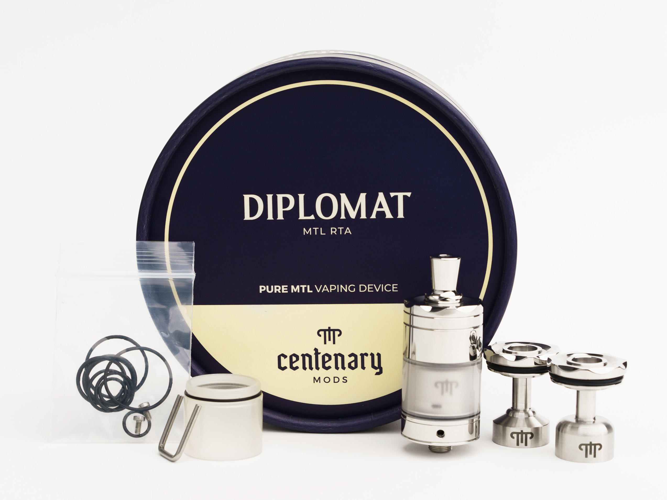 Компания Centenary Mods выпустила Diplomat MTL RTA. Односпиральный сигаретный бак получил ударостойкую колбу на 5 мл, регулируемую тугую затяжку и набор из трех различных сменных куполов.