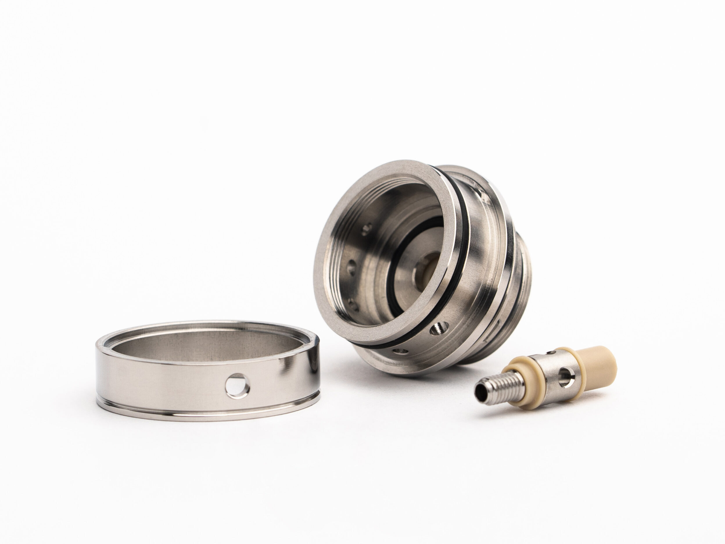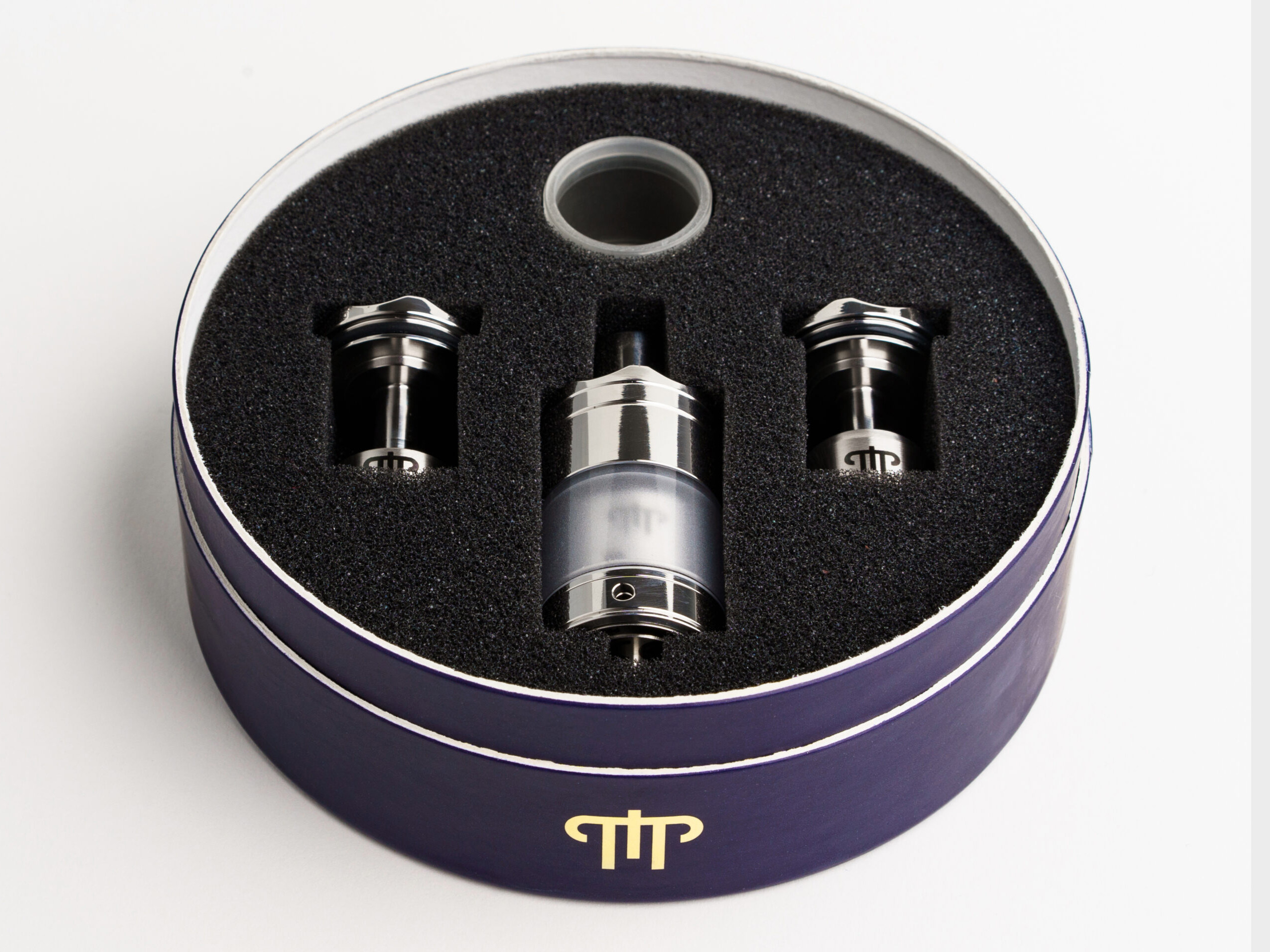 В конце 2022 года испанская компания Centenary Mods представила в инстаграме сигаретный бак — Diplomat MTL RTA. Девайсу дали строгий, но стильный корпус из высококачественной нержавеющей стали. Отполированный цилиндр дополнили матовой полимерной колбой, защищенной от ударов. Массивную граненую верхушку увенчали узким дриптипом из дельрина с 510-й посадкой. Снизу прикрутили вращающееся воздушное кольцо с маленькой круглой перфорацией.