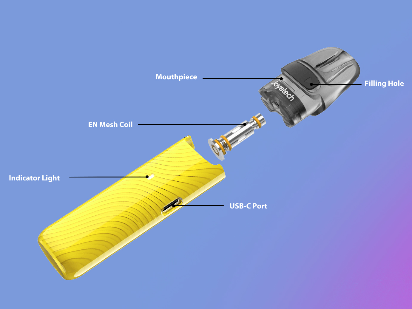 Компактный девайс предусматривает привычную систему безопасности, включающую защиту от коротких замыканий, перезаряда, переразряда и отсечку в 10 секунд. За зажигание отвечает воздушный активатор. Мощность на выходе может варьироваться в пределах от 13 до 20 ватт в зависимости от уровня заряда батареи. Встроенный аккумулятор располагает запасом в 900 мАч. Процесс зарядки займет менее одного часа. Картридж обладает стандартной конструкцией, состоящей из магнитного коннектора, резервуара на 2 мл и базы под сменные испарители серии EN с сопротивлением в 0,6 Ом.