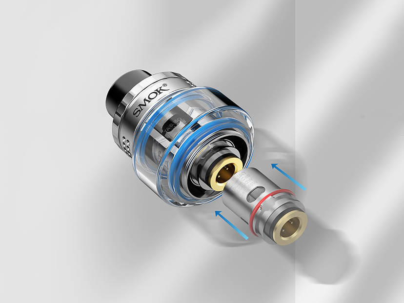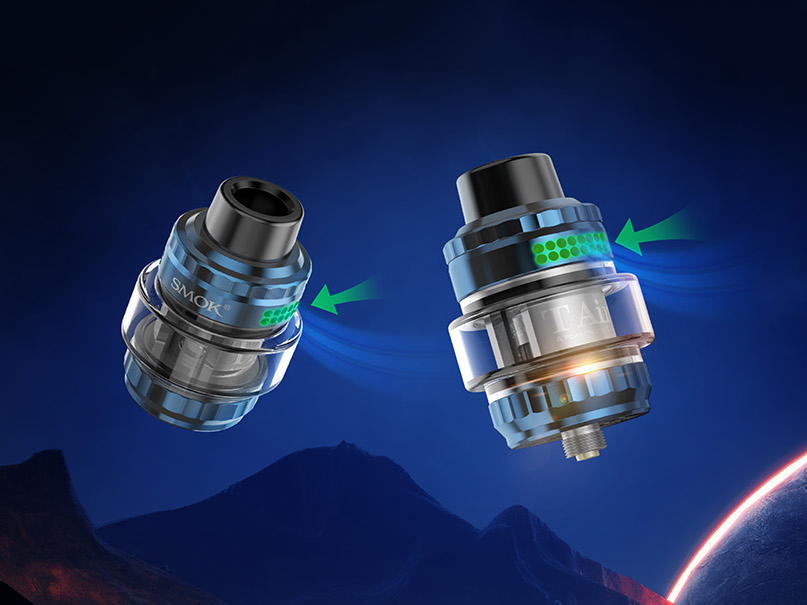 Компанию моду составляет новый необслуживаемый бак T-AIR Subtank, поддерживающий три вида сменных испарителей. Стандартным набором предусматриваются два сеточных экземпляра на 0,2 и 0,4 Ом. Сверху находятся широкий 810-й испаритель, удобная заправочная крышка и вращающееся воздушное кольцо с надежной защитой от протечек. Расширенная закаленная колба вмещает 5 мл жидкости.