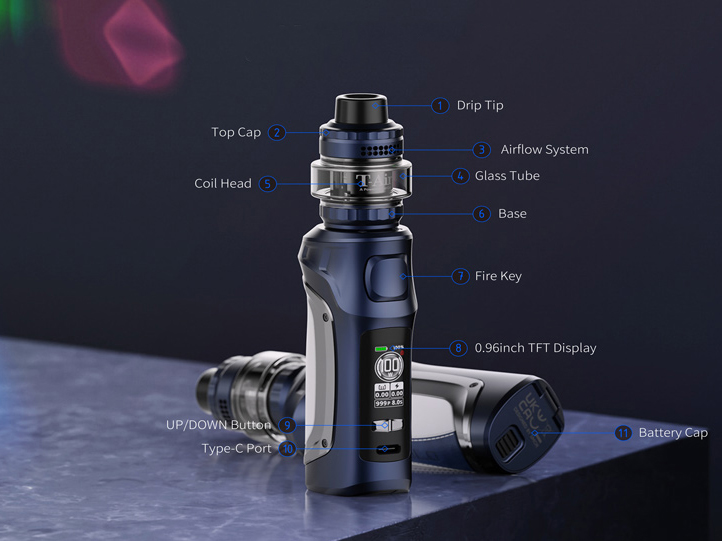 Мод располагает вариативным цветным интерфейсом, а также приличным диапазоном мощности от 5 до 100 ватт. В качестве источника питания требуется внешний аккумулятор одного из трех форматов — 21700, 20700 либо 18650, для последнего предусматривается адаптер. За зарядку и обновление прошивки платы отвечает USB Type-C. Доступное сопротивление варьируется в пределах от 0,1 до 2,5 Ом.