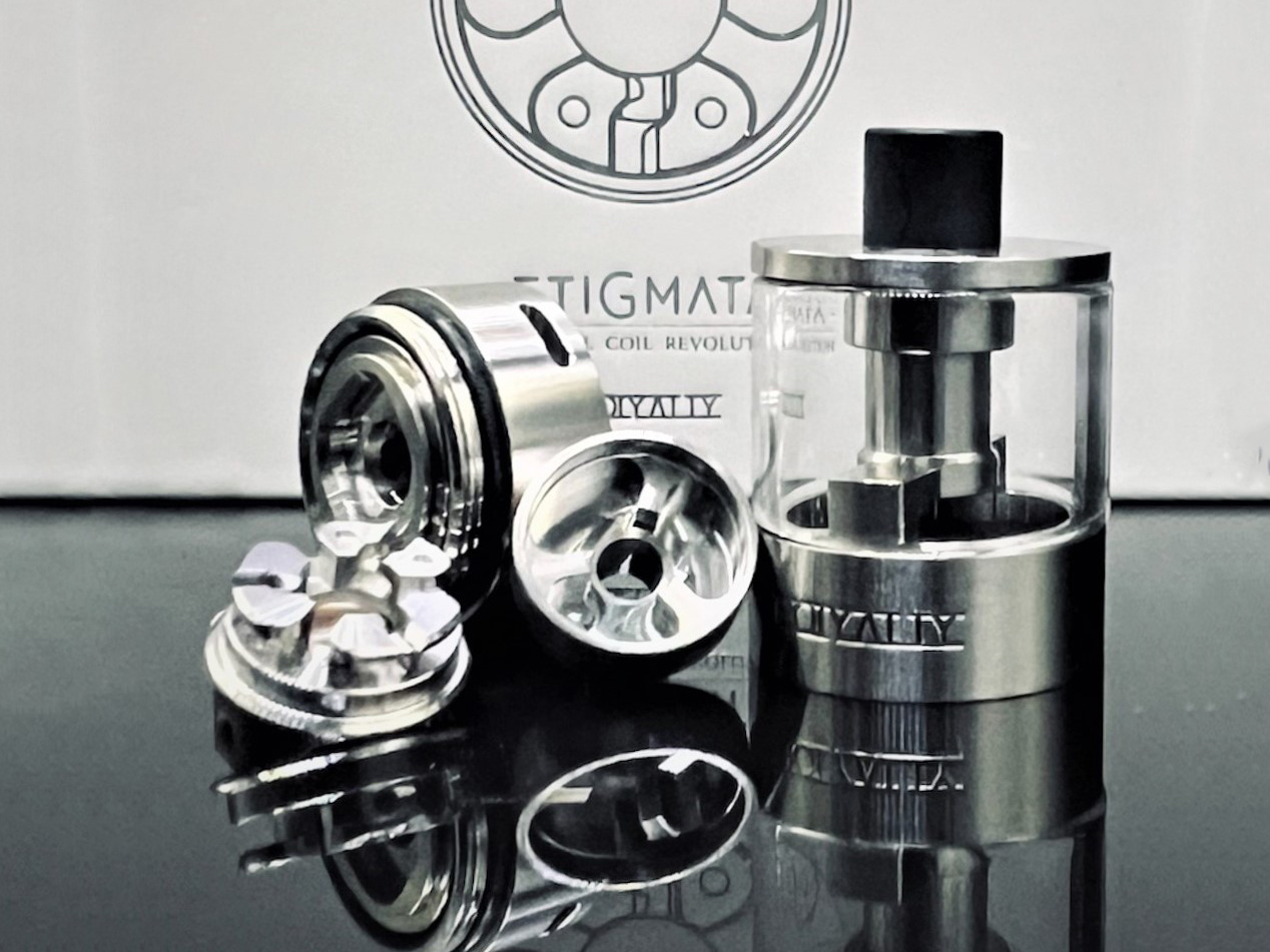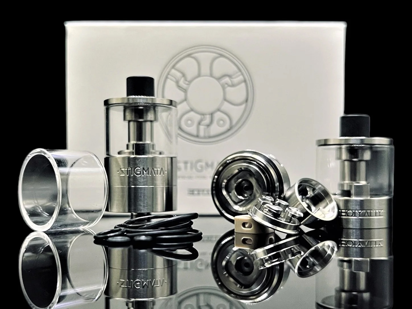 12 апреля корейская компания Holy Atty представила на странице в фейсбуке оригинальный девайс — Stigmata RTA. Обслуживаемый бак получил небольшой стальной корпус, реализованный в минималистичном сдержанном стиле. Альтернативных расцветок не предусмотрели, ограничившись лишь полированным неокрашенным вариантом. Сверху разместили классический дельриновый дриптип с 510-й посадкой. Закаленную цилиндрическую колбу накрыли лаконичной съемной крышкой. Крупное основание украсили рельефной гравировкой и подпоясали воздушным кольцом.