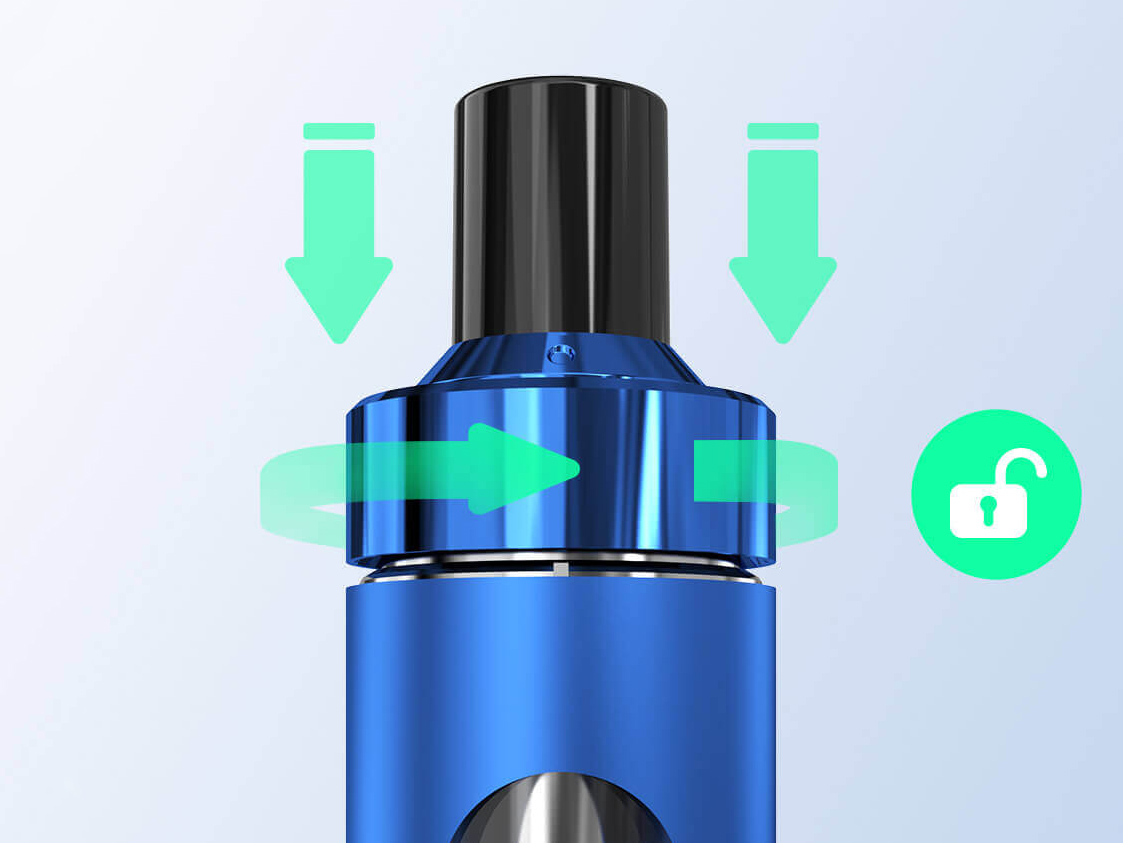 Внутри предусматривается минималистичная плата со стандартной системой безопасности. За питание отвечает встроенный аккумулятор с запасом в 1700 мАч. Уровень заряда отображается цветным индикатором в спектре из семи цветов от зеленого до красного, по мере убывания. Зарядку следует осуществлять через USB Type-C током в 1А. Внутри встроенного бака находится сменный испаритель из новой серии на сетке с сопротивлением в 0,8 Ом. Кроме того, устройство поддерживает еще четыре экземпляра из линейки BF с различной намоткой. Заправка производится сверху. Объем бака составляет 2 мл. Обдув можно реализовать как в свободном, так и тугом стиле путем вращения крышки.