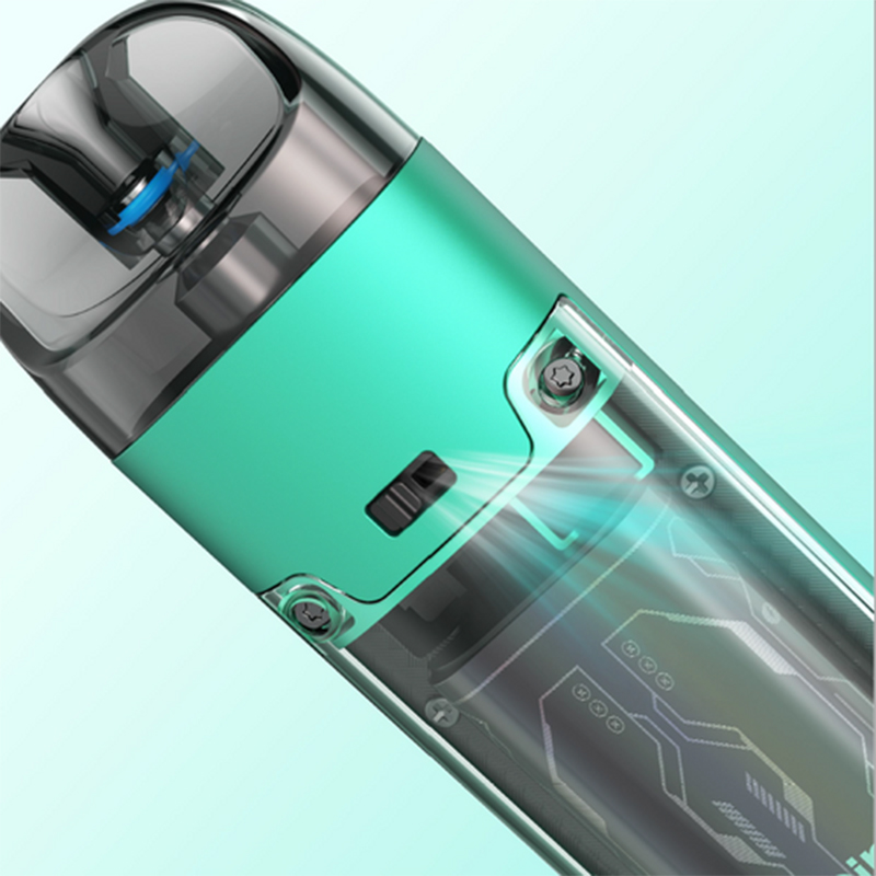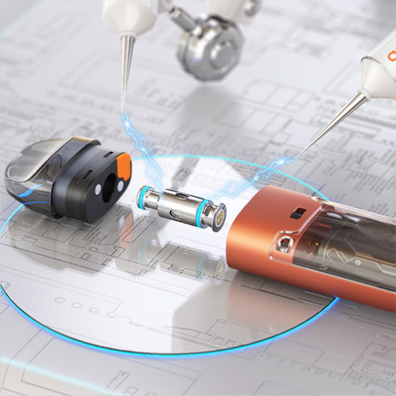 Несмотря на компактные размеры и отсутствие кнопок, устройство предусматривает возможность выбора между тремя режимами работы. Для переключения необходимо трижды снять и установить магнитный картридж. Помимо того, при помощи ползунка можно настроить интенсивность обдува. Источником питания выступает встроенный аккумулятор емкостью 1000 мАч. Зарядку надлежит осуществлять через USB Type-C током в 2А. Картридж комплектуется парой сменных сеточных испарителей из серии AF с с сопротивлением в 1,0 и 0,6 Ом. Резервуар отличается неплохим объемом в 3 мл. Заправка производится через отверстие на дне бака.