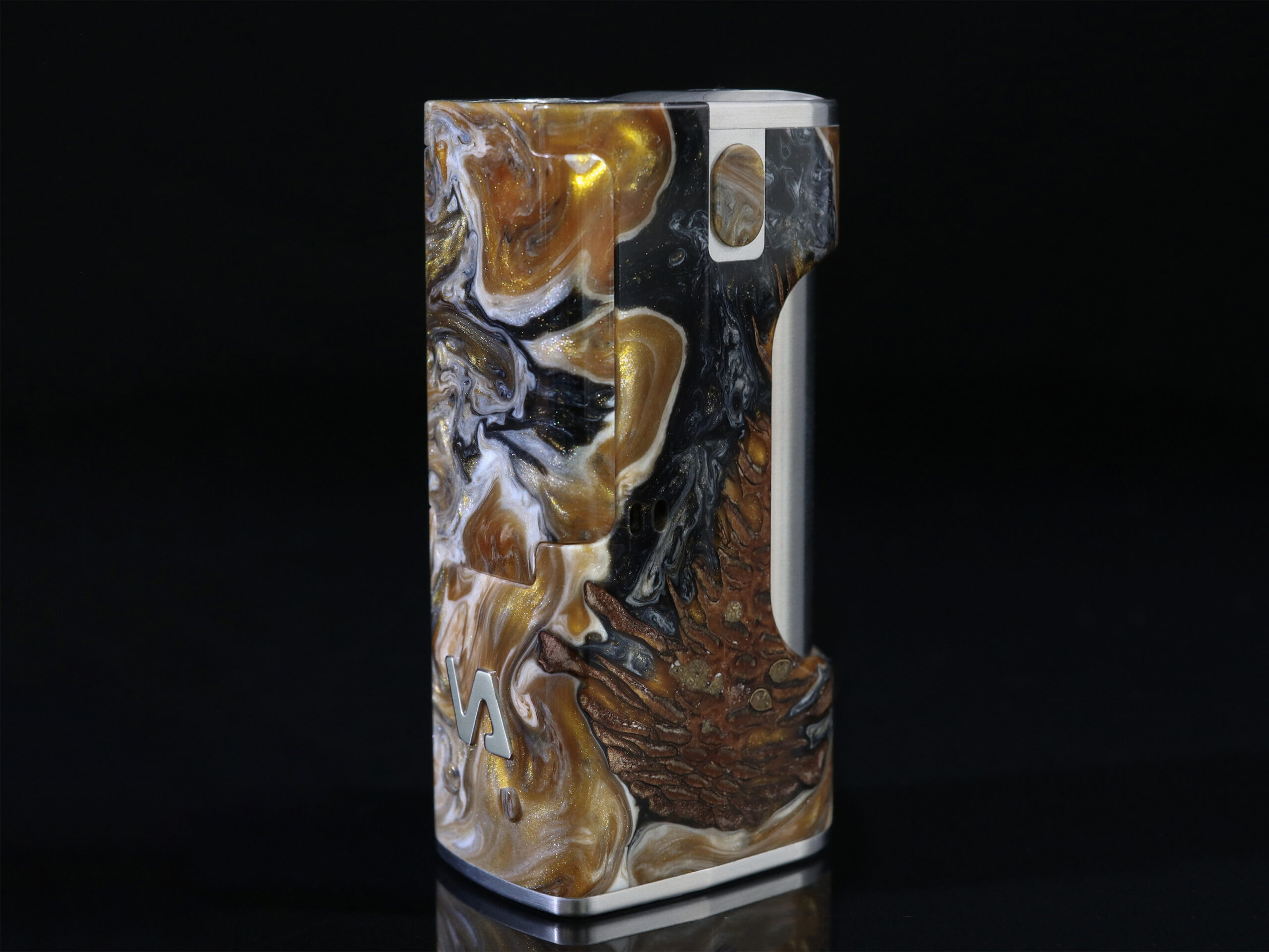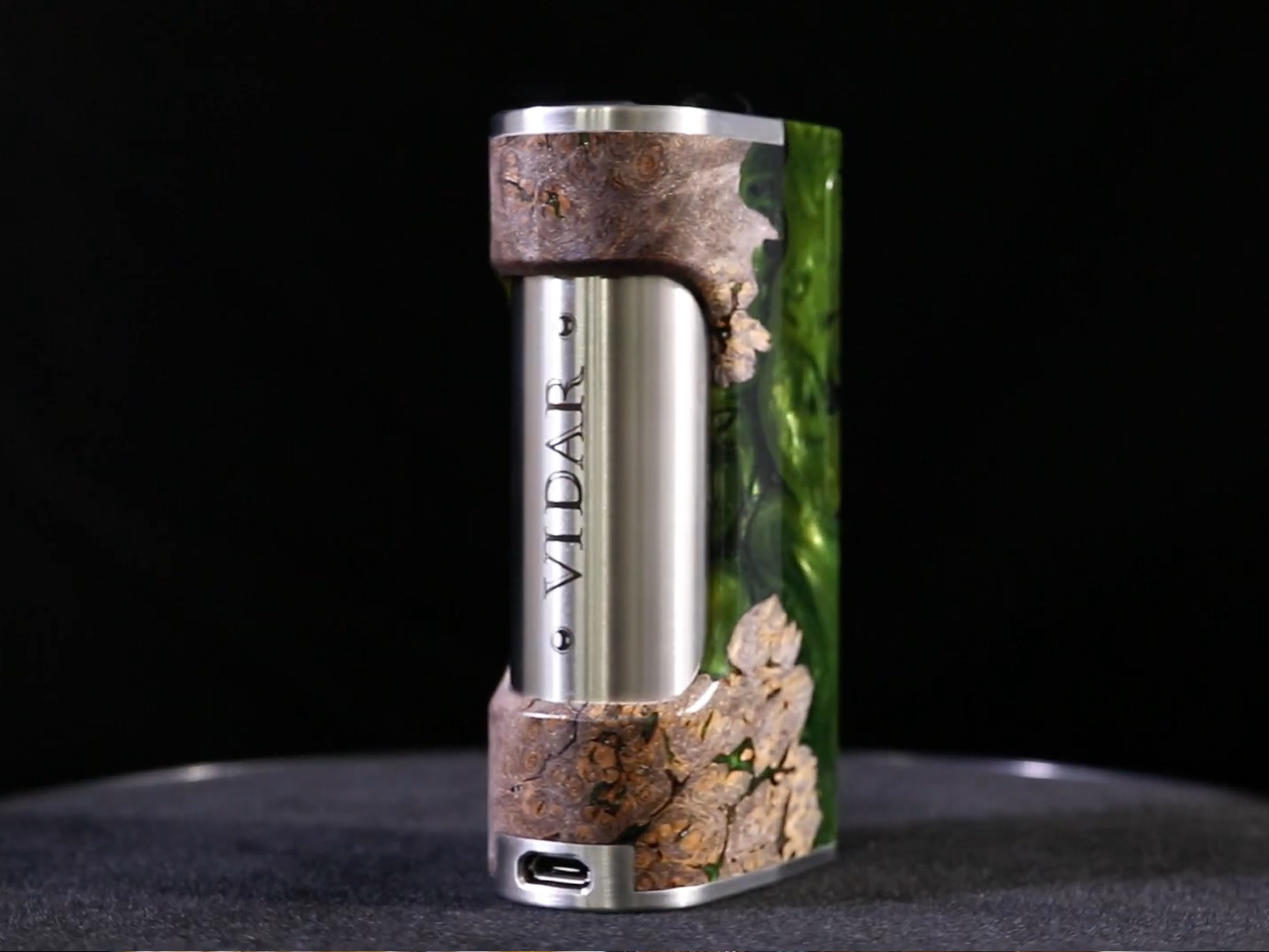 10 июля компания Vicious Ant анонсировала в инстаграме экстравагантный all-in-one мод — Vidar 21700 DNA60 Stabwood. Функциональное устройство наделили ярким разноцветным корпусом из полимеризированного дерева. Помимо того, мод усилили надежной легкой рамой из титанового сплава. На узком фасаде установили пару небольших регулировочных кнопок, логотип и сменную панель, реализованную сразу в двух экземплярах. Овальная кнопка fire заняла верхушку одного из широких торцов. Тыльную сторону округлили под хват, снабдили USB-портом и украсили крупным вырезом, обнажающим аккумуляторный тубус. Дисплей разместили на дне. Доступ к батарее ограничили скручивающейся крышкой на верхней площадке. Необычный металлический мундштук дополнили адаптером под стандартные 510-е экземпляры.