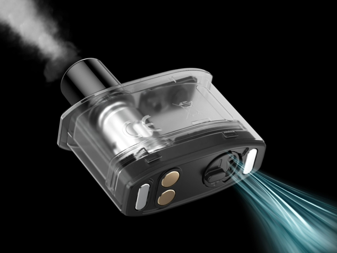 Портативной системой руководи вариативная плата, располагающая тремя режимами работы в диапазоне мощности от 15 до 20 ватт. Кроме того, предусматривается вариативная активация — по затяжке либо нажатием кнопки. За питание отвечает интегрированная батарея на 1300 мАч. Комплектный картридж отличается емким резервуаром на 4 мл и встроенным сеточным испарителем на 0,8 Ом с новой фирменной технологией VPU tech, обеспечивающей улучшенную вкусопередачу и больший срок службы. На дне бака имеется вращающейся регулятор для настройки обдува.