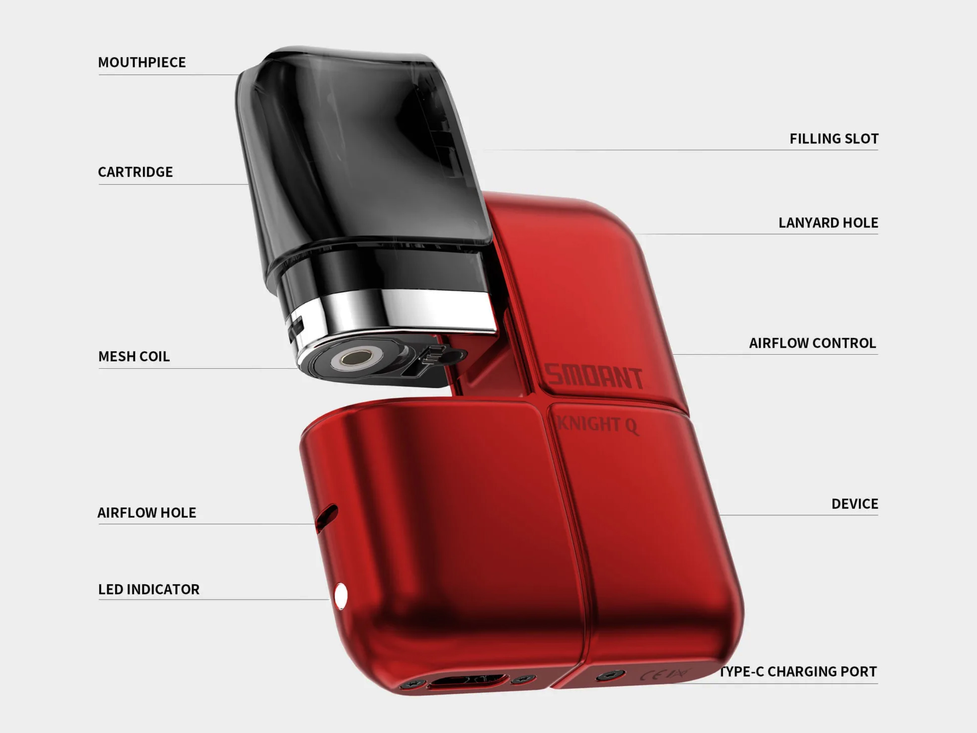 16 октября компания Smoant анонсировала в инстаграме лаконичную под-систему — Knight Q Pod Kit. Девайс упаковали в миниатюрный прямоугольный корпус с эргономично скругленными углами. Основным материалом избрали цинковый сплав, добавляющий компактной конструкции увесистости. Палитру расцветок собрали из пяти монотонных вариаций в сдержанных тонах. Магнитный картридж гармонично вписали в один из верхних углов. На противоположной стороне предусмотрели петлю с длинным тонким темляком. Узкую лицевую сторону перфорировали воздушным отверстием и снабдили небольшим цветным индикатором. USB-порт отправили на срезанное дно. Кнопок и прочих элементов управления не предусмотрели.