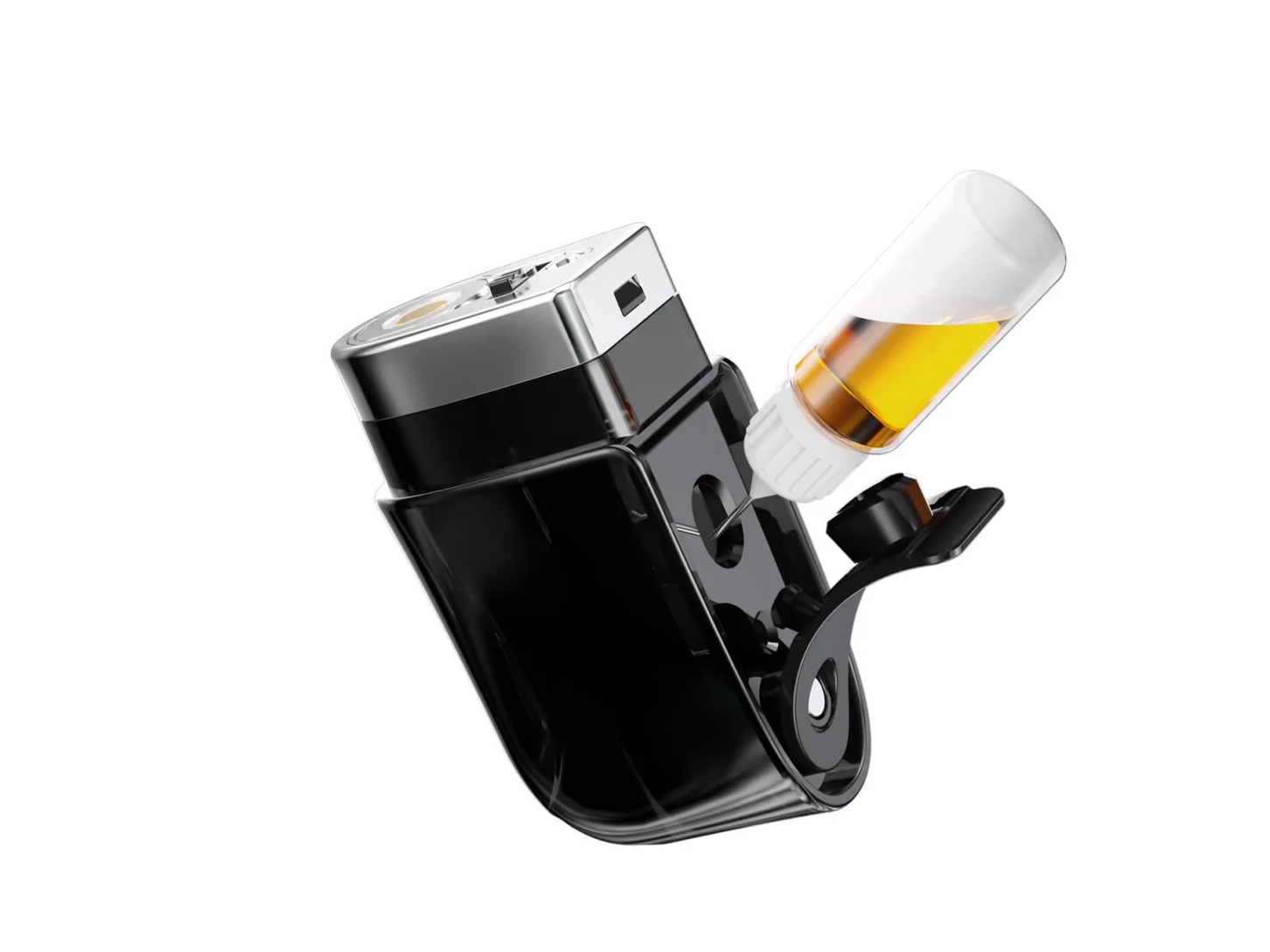 Портативное устройство располагает простейшей платой, обеспечивающей безопасность и выходное напряжение в пределах от 3,4 до 4,2 вольт. Встроенная батарея обладает запасом в 1000 мАч. Процесс зарядки через USB Type-C займет 1 час. Картридж фиксируется при помощи магнитного коннектора и комплектуется сменным сеточным испарителем на 0,8 Ом из линейки P-series. Кроме того, в отдельной продаже доступны еще два экземпляра на 1,0 и 0,6 Ом. Бак заправляется через заднюю стенку и вмещает 3 мл. На дне резервуара имеется ползунок для настройки обдува.
