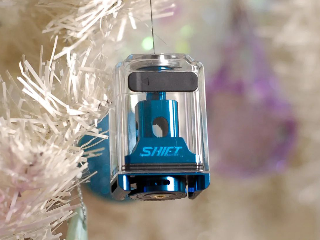 22 декабря компания Vaperz Cloud анонсировала в отдельной продаже обслуживаемый бак — Shift Boro Tank, разработанный совместно с GeroBak. Девайс наделили крупным прозрачным резервуаром из ударостойкого термопластика и надежным стальным основанием. Выбор расцветок разнообразили тремя вариациями — черной, серебристой и синей. Верхушку широкой лицевой стороны перфорировали заправочным отверстием, дополненным откидной силиконовой заглушкой. Купол украсили лаконичной контрастной гравировкой. На дне предусмотрели граненое вращающееся кольцо, отвечающее за забор воздуха.