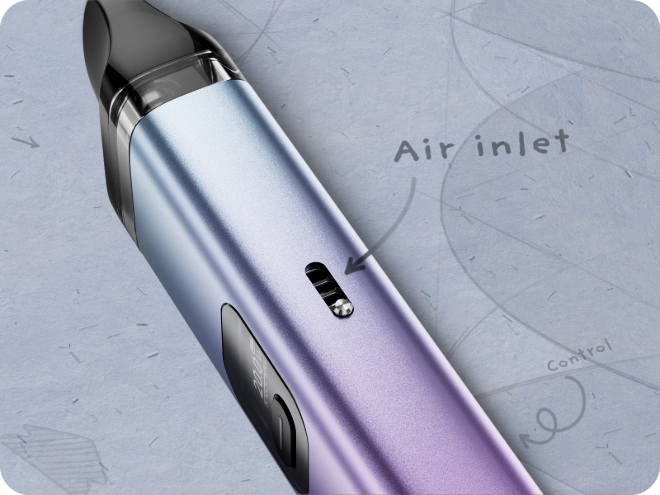 Источником питания для девайса выступает компактный внешний аккумулятор с неплохим запасом в 1000 мАч. За безопасность и управление отвечает вариативная плата, поддерживающая скромный одноцветный интерфейс и выдающая мощность в пределах от 6 до 25 ватт. Сменные картриджи реализуются в трех экземплярах с различными встроенными испарителями на 0,6; 0,8 либо 1,2 Ом. Бак обладает удобной верхней заправкой. Обдув регулируется ползунком на торце.