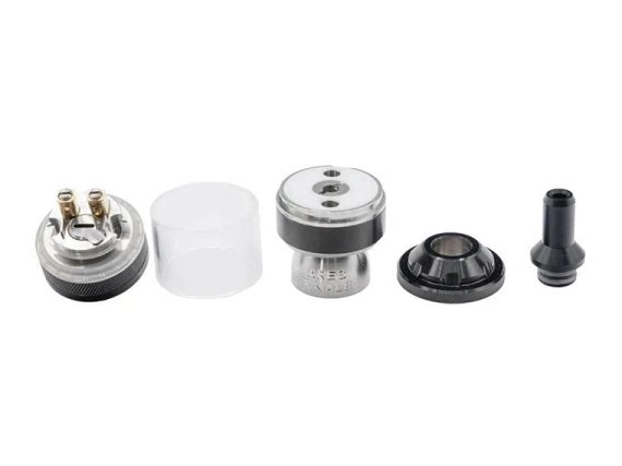 Бак поставляется с двумя дриптипами, двумя спиралями, хлопоком, запчастями, дополнительной колбой комплектом воздушных вставок и инструкцией.