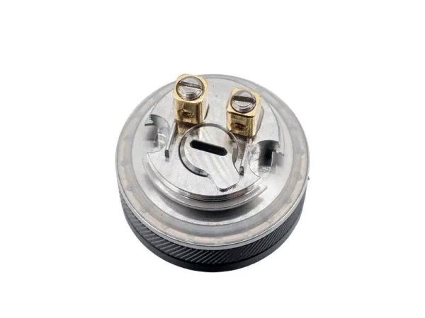 Под куполом находится небольшая база с двумя позолоченными прямоугольными стойками и воздушной перфорацией в центре, на дне. Ножки спирали надлежит горизонтально расположить в слотах и зафиксировать верхними винтами с прямыми шлицами. По бокам деки имеются небольшие прорези для укладки концов хлопка. Воздушный канал с горизонтальной прорезью может вращаться для дополнительной регулировки затяжки. Помимо того, предусматривается комплект из семи сменных воздушных вставок для наибольшей вариативности обдува. Стандартную колбу на 2 мл можно заменить увеличенной версией емкостью 4,5 мл.