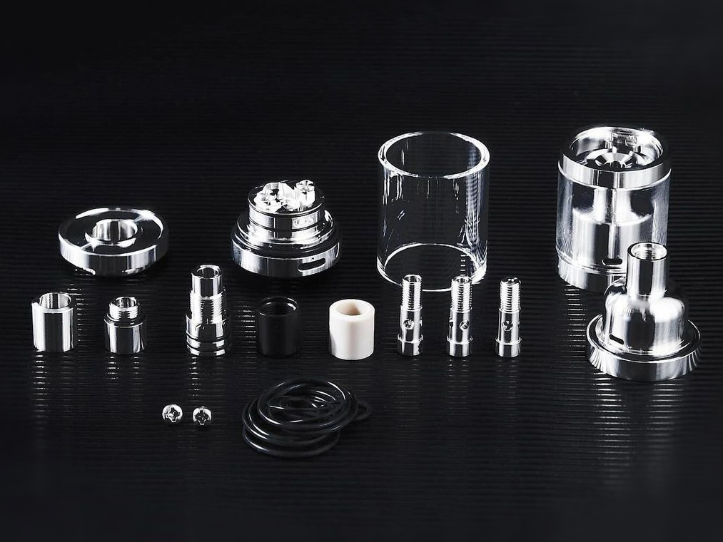 Базу представляют две коренастые стойки для установки одной спирали. Ножки намотки следует горизонтально разместить на широких платформах и зафиксировать винтами под крестовую отвертку. Объем и форму испарительной камеры можно уменьшить благодаря наличию сменного купола с альтернативной внутренней обработкой. Помимо того, предусматриваются шесть сменных воздушных вставок с разнокалиберными отверстиями для вариативной затяжки. Воздух подается на намотку снизу, через отверстие в центре деки. Объем можно увеличить с 3 до 4,5 мл при помощи дополнительной колбы и удлиненной шахты.