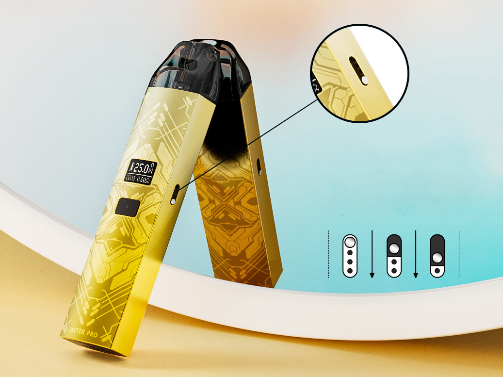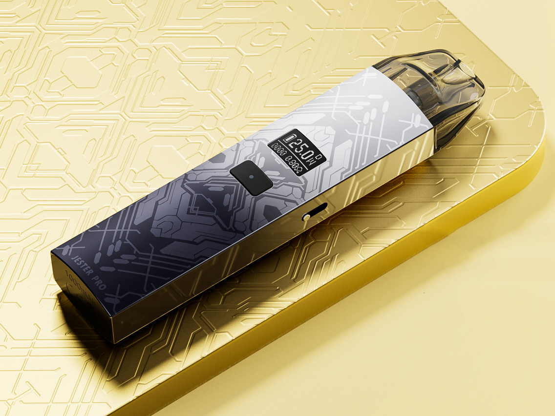 20 февраля компания Vapefly анонсировала в инстаграме стартовый набор —  Jester Pro Kit. Под-система получила легкий алюминиевый корпус с оригинальным гравированным орнаментом и эргономичной компактной формой. Палитру расцветок разнообразили пятью вариантами. На выпуклом фасаде расположили небольшой монохромный дисплей и прямоугольную кнопку со встроенным индикатором. На одном из торцов вырезали воздухозаборную перфорацию, дополненную регулятором. Противоположную боковину снабдили зарядным портом. Сверху, посредством магнитного коннектора зафиксировали привычный сменный картридж.