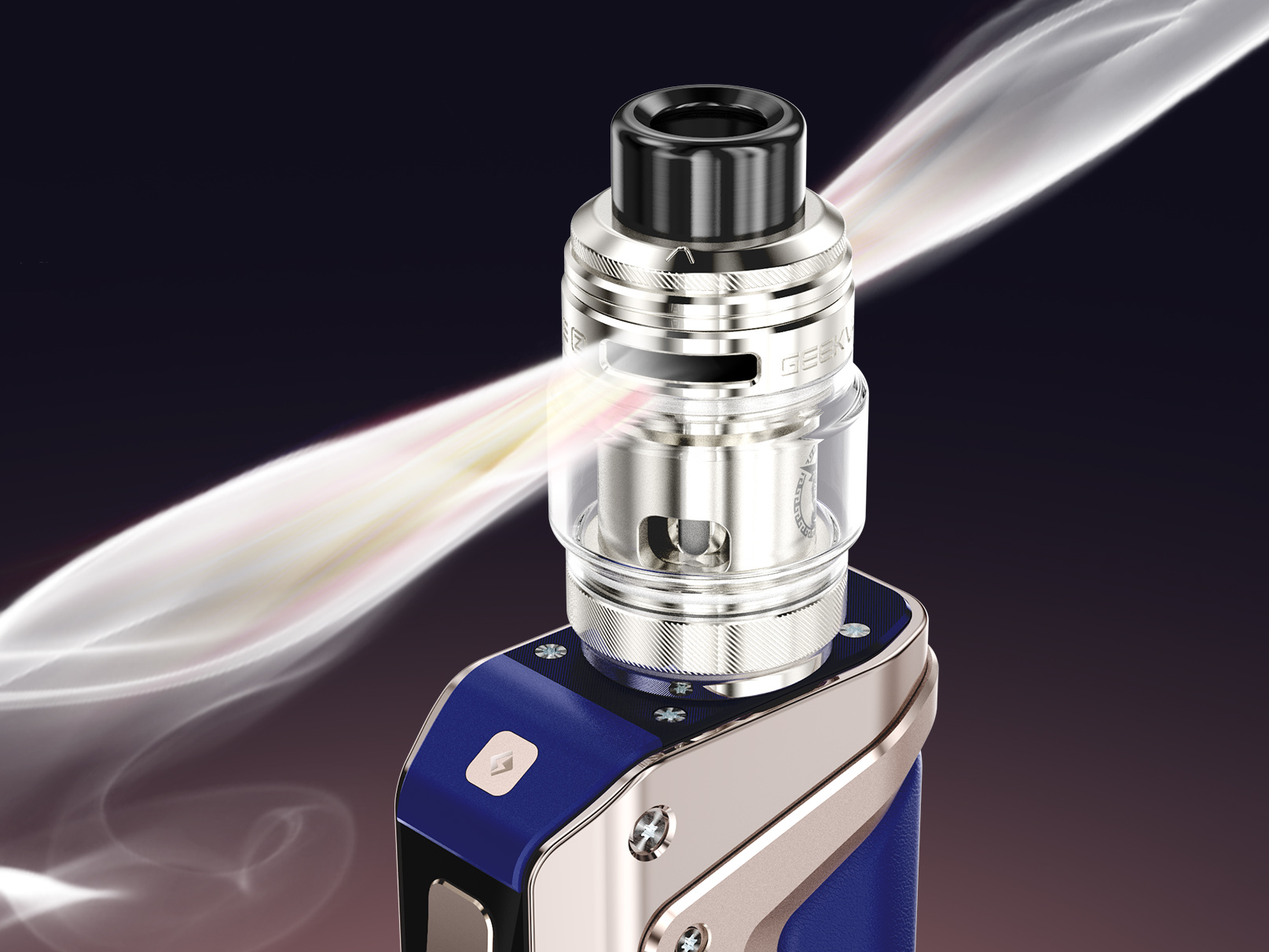 В паре с модом идет иассивный необслуживаемый бак Z Fli Tank с удобной откидной крышкой, емкой колбой на 5,5 мл и герметичной системой обдува. Внутри находится предварительно установленный испаритель из серии Z XM с сеточной намоткой на 0,15 Ом. Помимо него, в качестве альтернативы предусматривается еще один сменный экземпляр с сопротивлением в 0,4 Ом.
