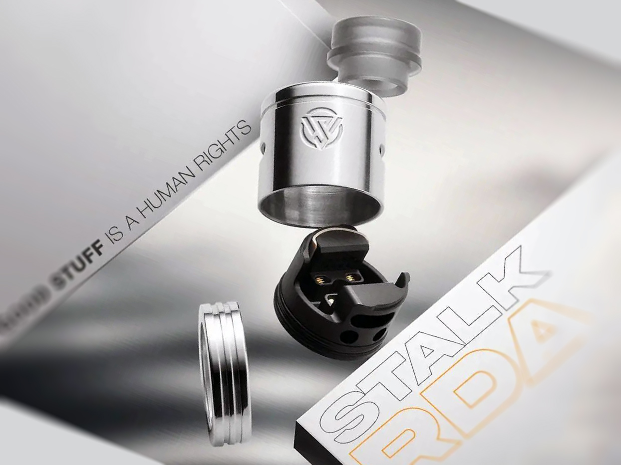 28 февраля в ряде интернет-магазинов появилась односпиральная дрипка — Stalk RDA, разработанная индонезийской компании Republic of Vape. Новый девайс получил монолитный цилиндрический купол с рельефной гравировкой и двумя мундштуками формата 810 под различные затяжки. Основным материалом выступила нержавеющая сталь. Выбор расцветок ограничили тремя версиями — черной, темно-серой и серебристой. По бокам распределили пару вытянутых овальных отверстий, отвечающих за обдув намотки. Основание дополнили съемным кольцом, позволяющим увеличить посадочный диаметр с 22 до 24 мм.