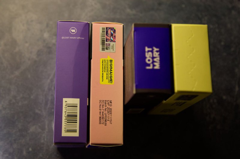 Упаковка не вызывает никаких вопросов. Здесь, как и у предыдущих жидкостей от Lost Mary, указывается вся необходимая информация. Каждый вкус имеет свой характерный окрас, который не даст спутать устройства друг с другом. Устройства не протекают, удобно лежат в кармане и радуют наличием некой альтернативы спинеру, для беспокойных рук. Съемный аккумулятор – это вообще прекрасная идея, которая потенциально позволяет иметь с собой несколько запасных аккумуляторов.