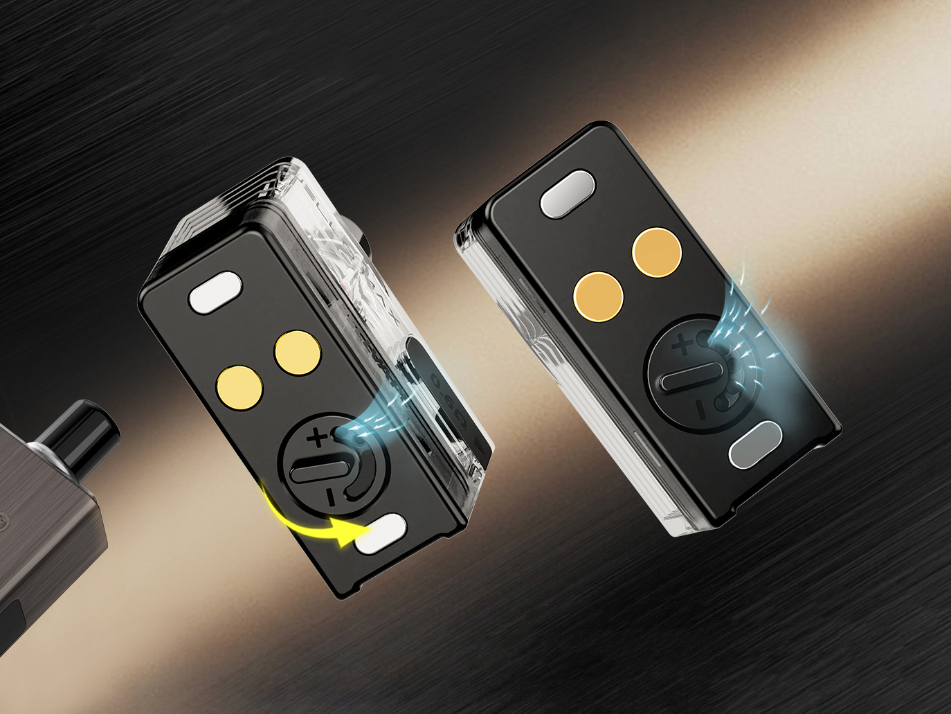 Устройство функционирует в режиме вариватт с монохромным интерфейсом и диапазоном от 5 до 30 ватт. Источником питания выступает емкий интегрированный аккумулятор на 1900 мАч. Процесс зарядки через USB Type-C порт займет 40 минут. В запасе имеются два сменных картриджа со встроенными испарителями на 0,6 и 1,0 Ом под свободную либо тугую затяжку соответственно. Объем резервуара в обоих случаях составляет 4 мл. Заправочное отверстие скрывается на боковой стенке. Помимо того, на дне бака имеется вращающийся регулятор для настройки обдува.