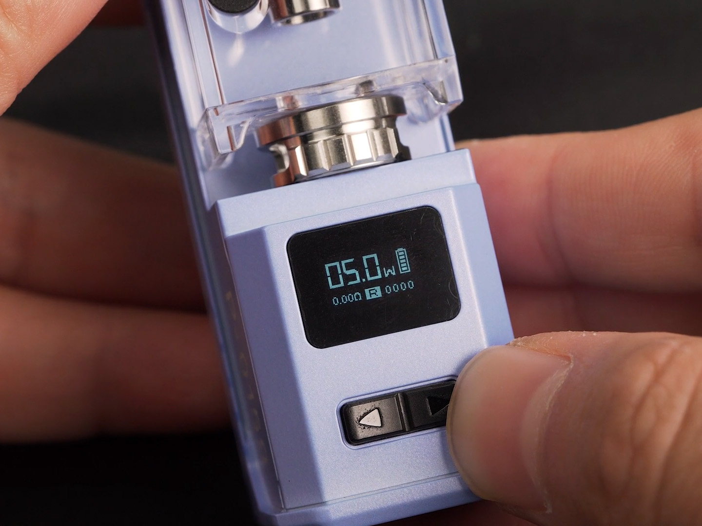 Устройством руководит плата Quest 2.0 с широким диапазоном мощности от 5 до 80 ватт. Источником питания выступает внешний аккумулятор формата 18650. Зарядку следует осуществлять через USB Type-C током в 2А. Доступное сопротивление варьируется в пределах от 0,12 до 2,0 Ом.