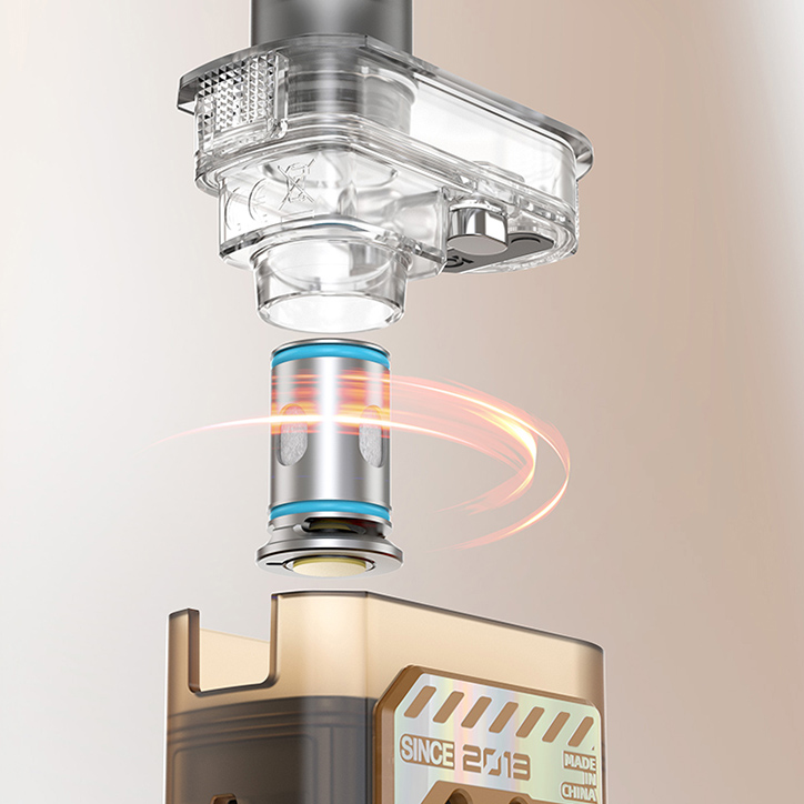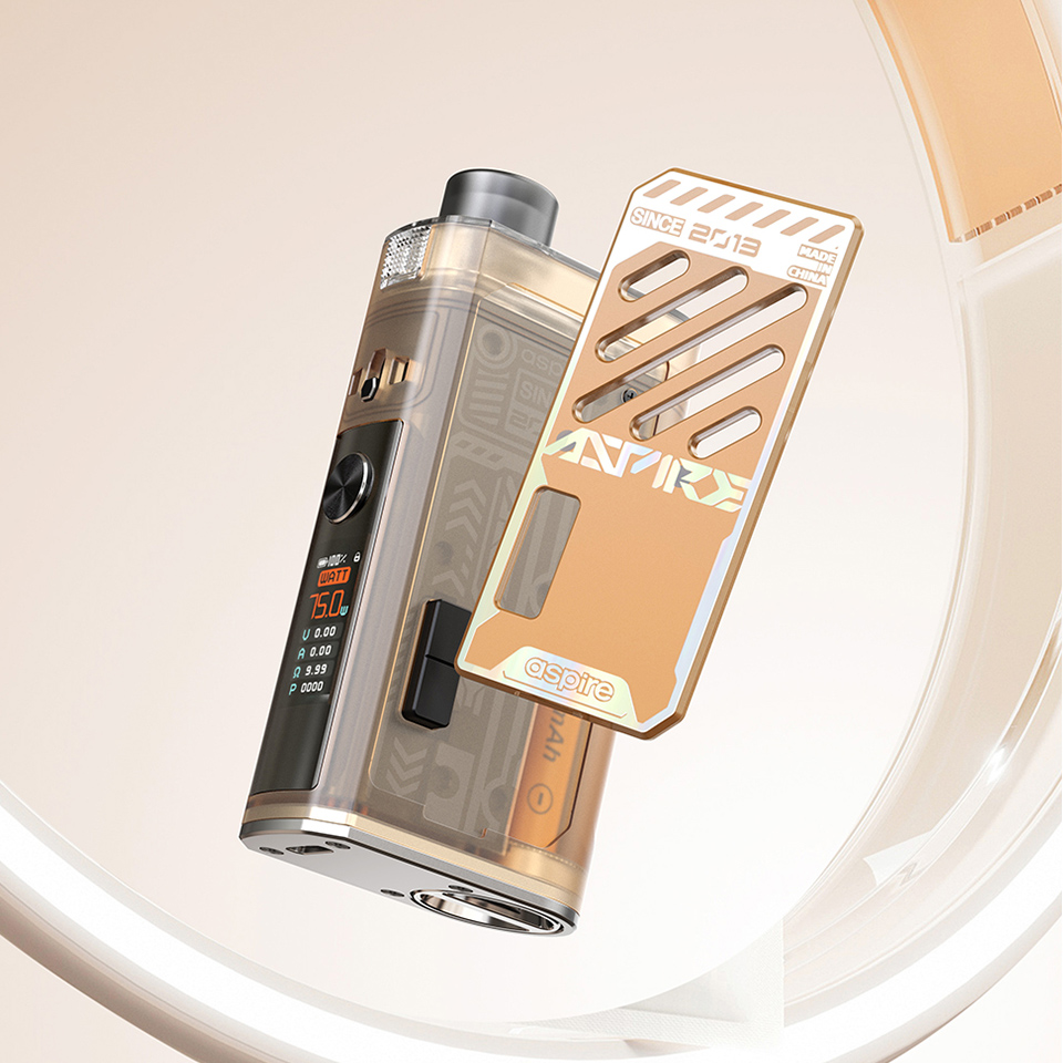 За прозрачными стенками трудится фирменная плата ASP с удобным интерфейсом, предохранителем и тремя режимами работы — вариватт, варивольт и Bypass. Мощность на выходе ограничивается диапазоном от 5 до 75 ватт. Для обновления прошивки и зарядки внешней батареи 18650 предусматривается USB Type-C порт. Магнитный картридж располагает предварительно установленным испарителем с сопротивлением в 0,25 Ом. Кроме того, доступны ещё два сменных варианта из одноименной линейки на 0,17 и 0,6 Ом. Бак заправляется через дно и вмещает 5 мл жидкости.