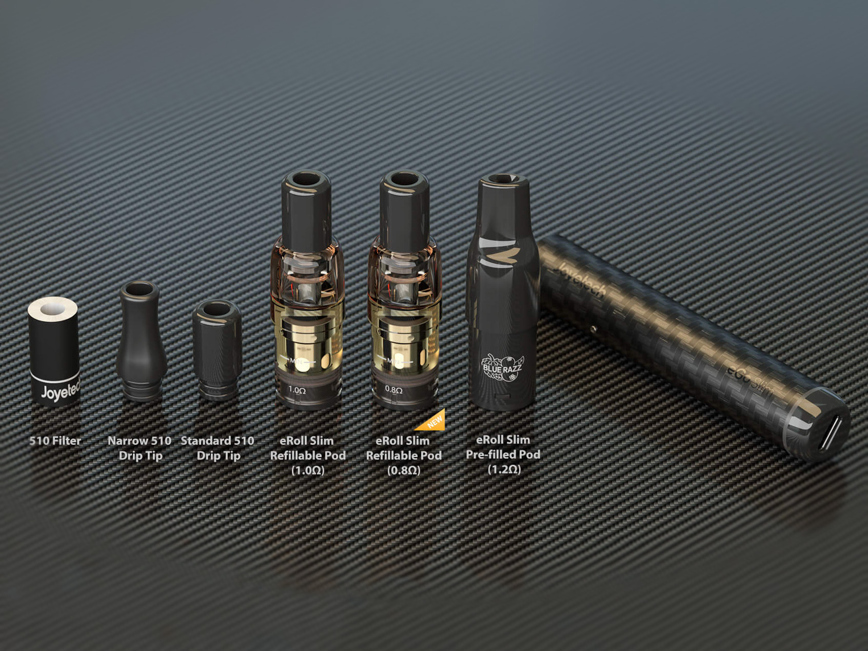 2 июля компания Joyetech анонсировала на странице в фейсбуке стартовый набор — eGo Slim Pod Kit. Девайс облачили в вытянутый цилиндрический корпус из легкого сплава в классическом стиле вейп пен. Гамму расцветок собрали из восьми монотонных версий. Минимализм конструкции не стали нарушать кнопками и навязчивым декором. Магнитный картридж снабдили стандартным 510-м дриптипом, а также комплектом аутентичных бумажных мундштуков. Боковую стенку перфорировали воздухозаборным отверстием с удобным регулятором. Дно окольцевали цветным индикатором и укомплектовали зарядным портом.