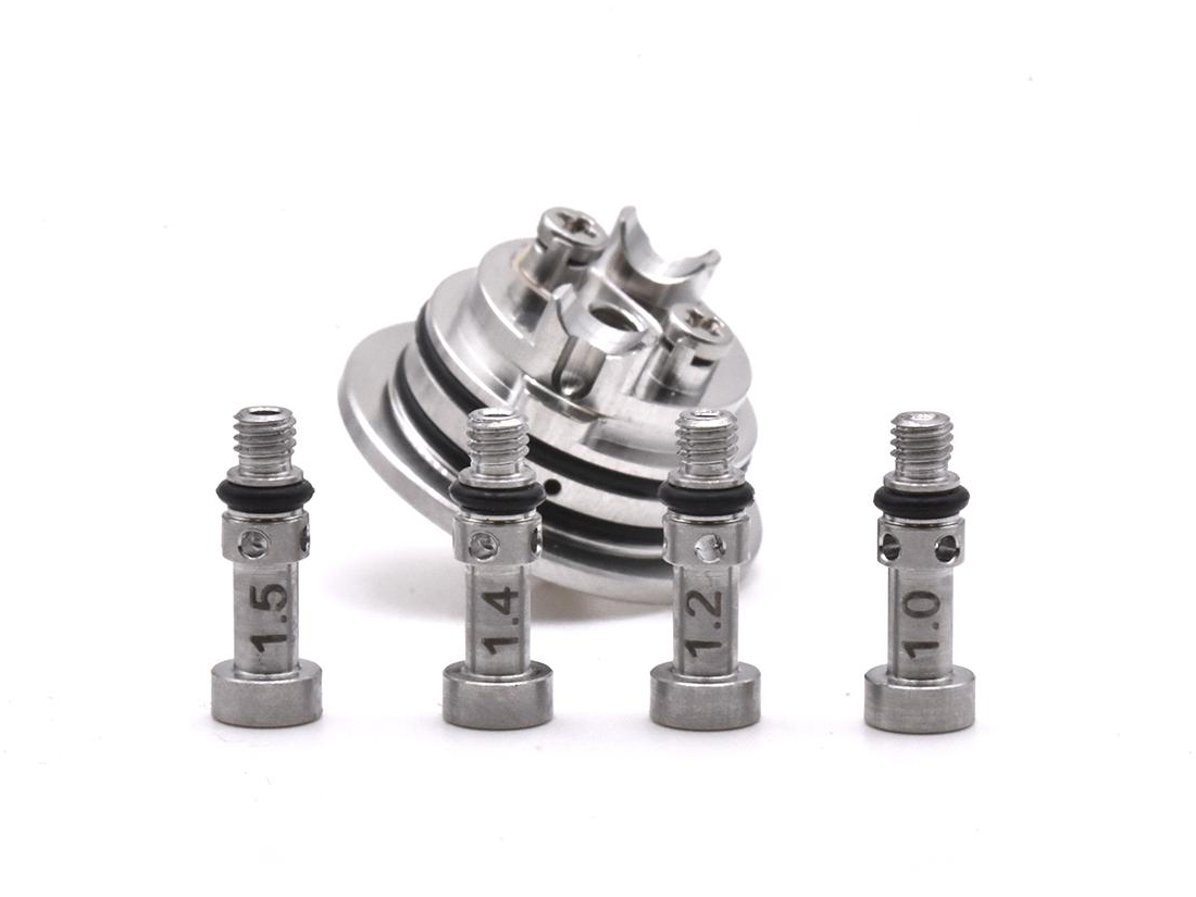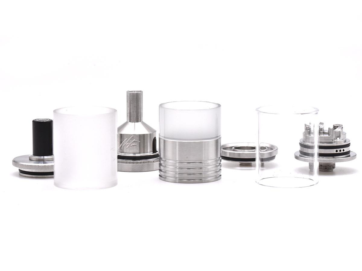 Под гравированным куполом находится односпиральная база с парой приземистых стоек. Ножки намотки фиксируются в горизонтальной плоскости при помощи винтов с крестовыми шлицами. По бокам возвышаются две полукруглые рампы для выравнивания спирали. В центре деки, на дне находится воздушный канал. Для наибольшей вариативности тугого обдува предусматривают четыре сменные вставки с разнокалиберными каналами. Объем резервуара составляет 5 мл, заправка осуществляется сверху.