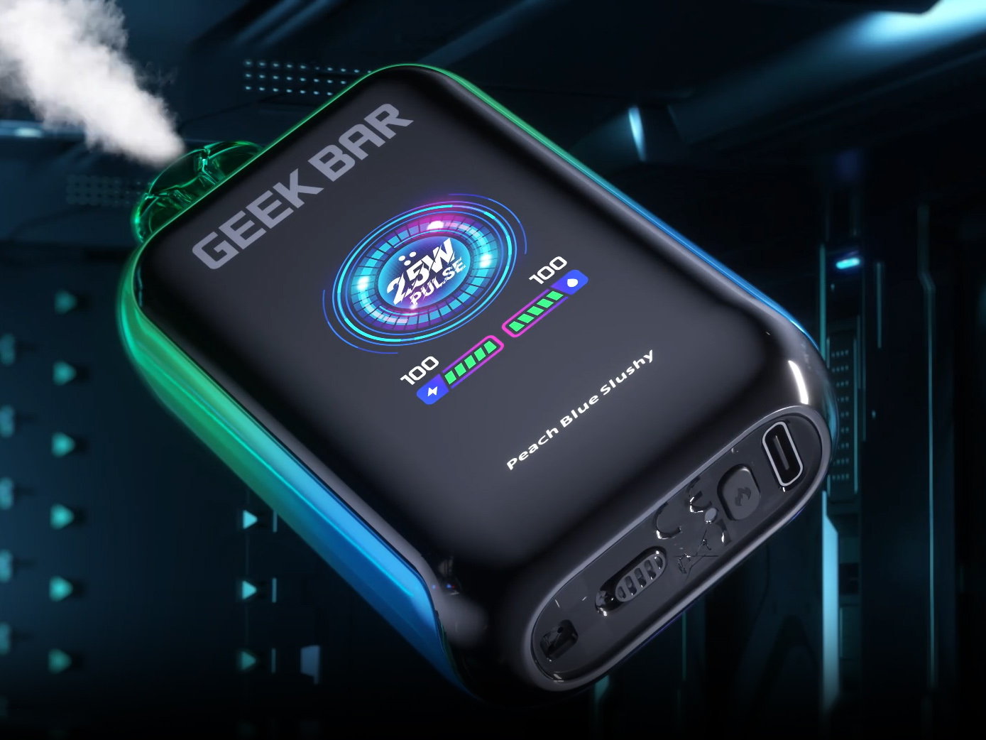 16 июля в онлайн-продажу поступил нетривиальный одноразовый девайс — SKYVIEW 25K Disposable, выпущенный дочерним брендом GeekVape. Под-системе дали относительно крупный полимерный корпус с плавным силуэтом без острых граней. На выбор предложили пятнадцать вкусовых вариаций, исполненных в различных расцветках. Всю поверхность широкого фасада занял цветной дисплей. Полупрозрачный мундштук наделили эргономичной приплюснутой формой и сместили к правой стороне. Срезанное дно заняла панель управления, состоящая из воздушного отверстия с регулятором, кнопки и USB-порта.