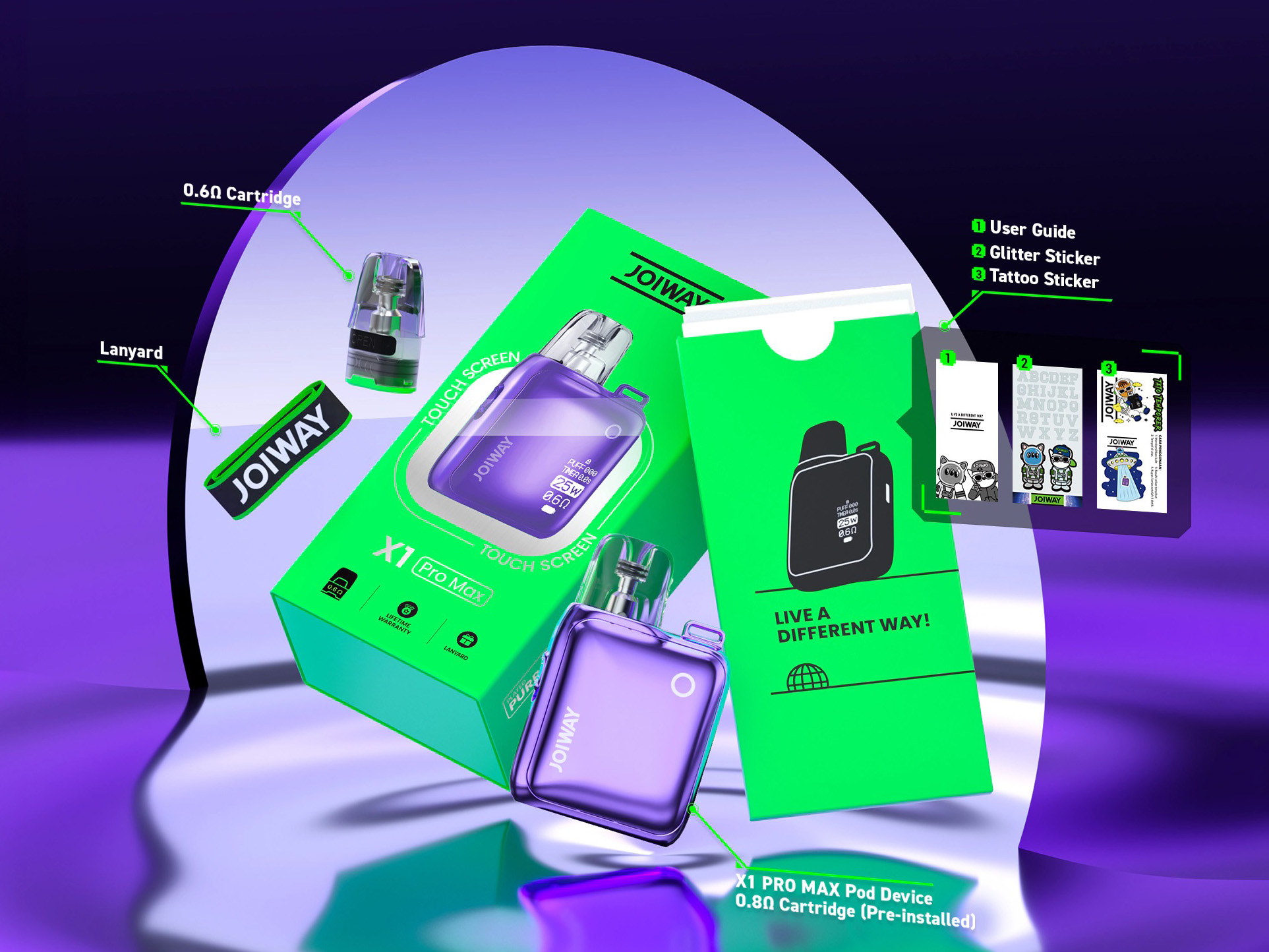 Компания JOIWAY выпустила X1 Pro Pod Kit. Увесистый портативный девайс получил регулируемую плату с оригинальным сенсорным интерфейсом, увеличенные картриджи и мощность в 25 ватт.