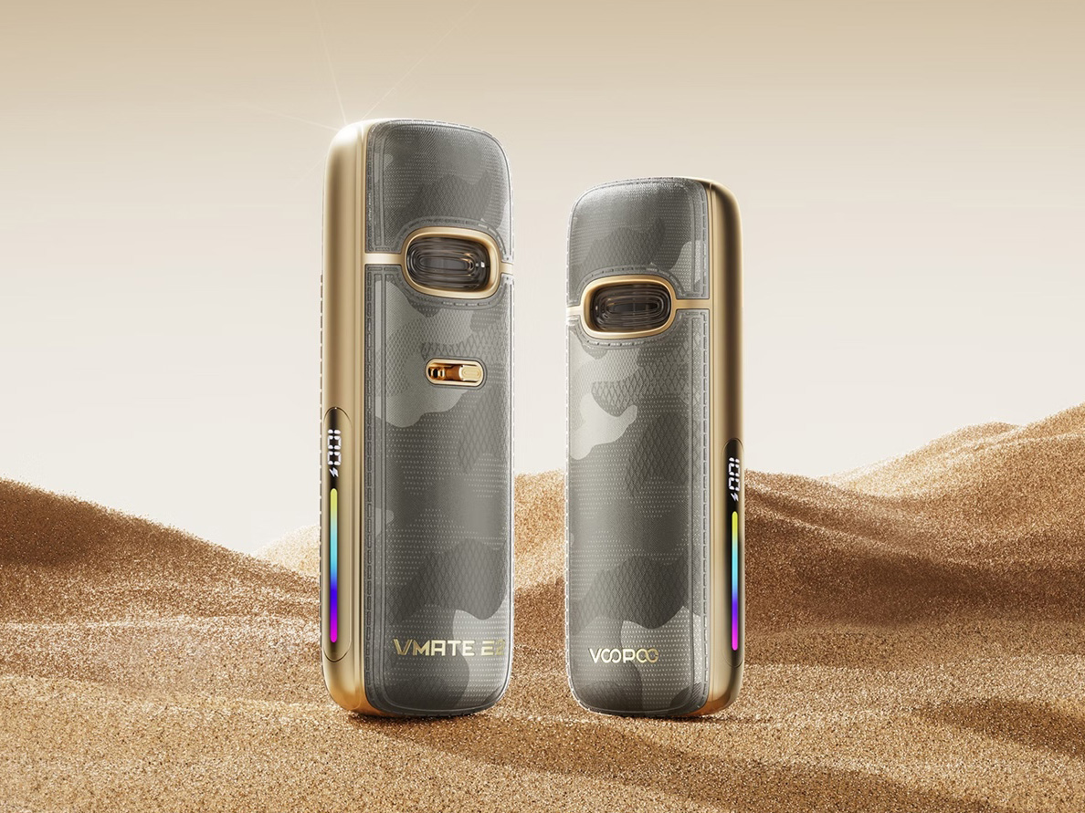 8 октября компания Voopoo анонсировала в инстаграме портативный девайс — Vmate E2 Pod Kit. Под-систему облачили в оригинальный корпус из цинкового сплава с кожаным покрытием и удобной формой без острых углов. Палитру расцветок собрали из восьми вариантов с разными оттенками металлического каркаса и различным тиснением. Большой сменный картридж с доступным заправочным отверстием накрыли магнитным колпаком, гармонично вписывающимся в плавный бескнопочный силуэт. Широкую тыльную сторону перфорировали воздушным отверстием с регулятором. Узкую боковину укомплектовали индикатором и градиентным лайтбаром. На скругленном дне разместили USB Type-C порт.