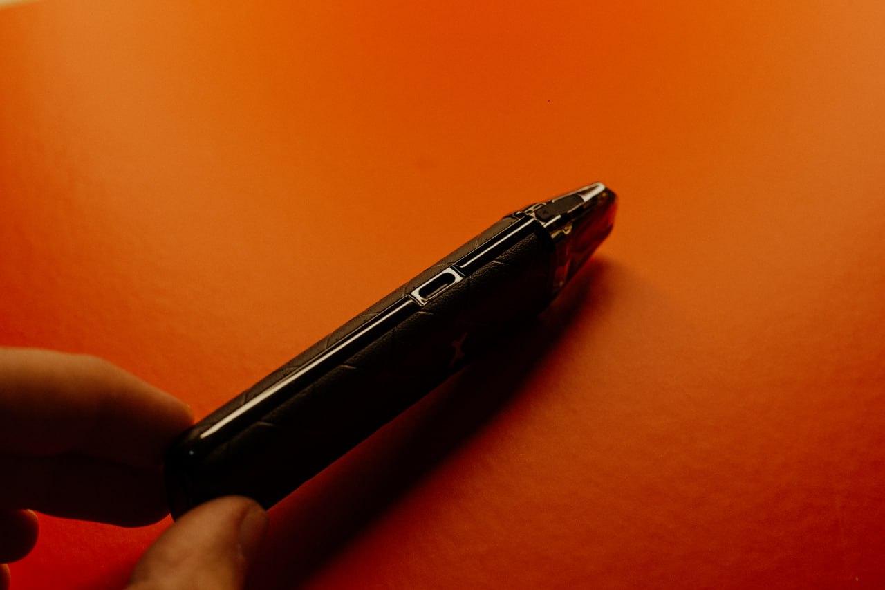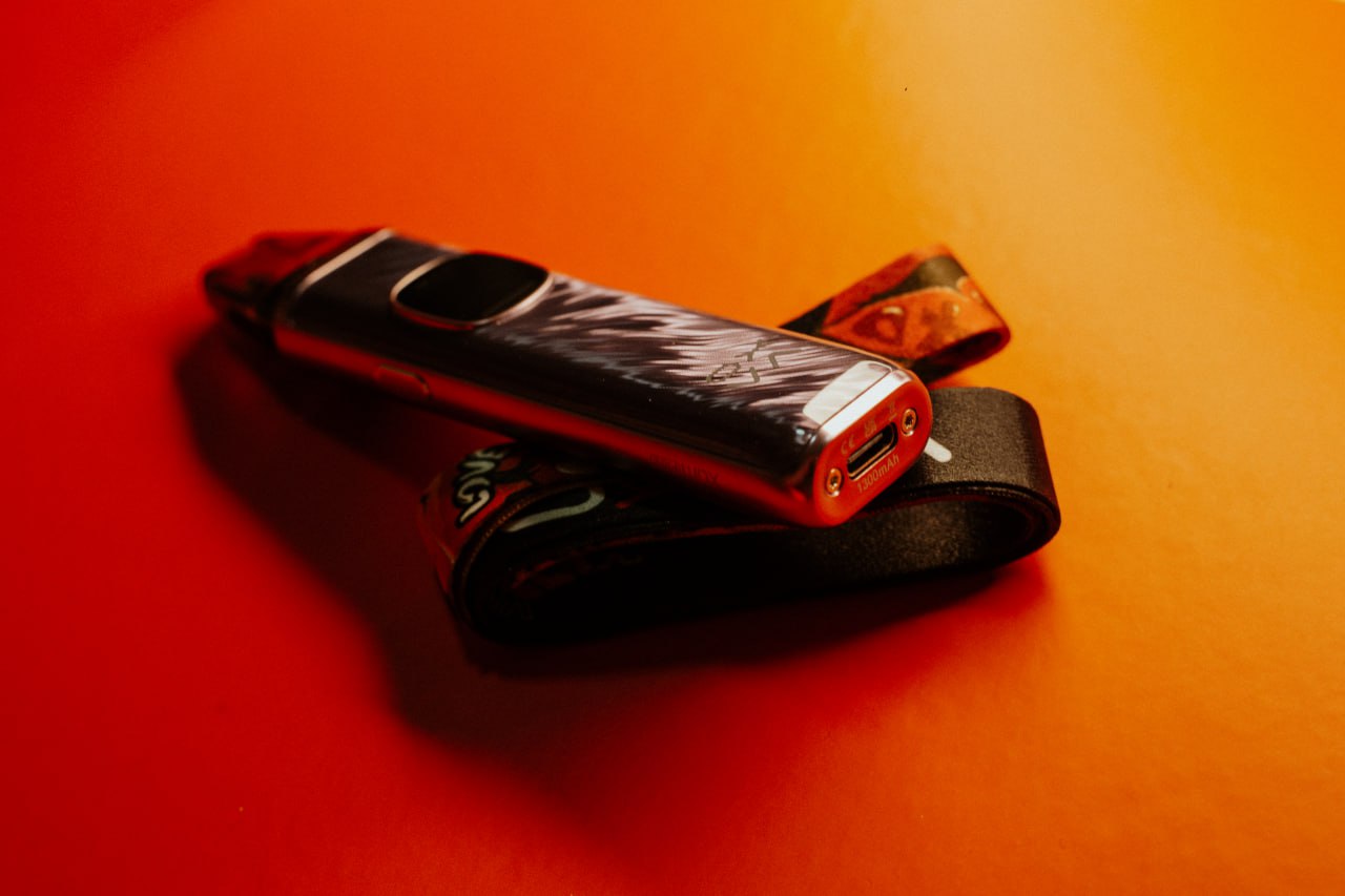 Форм-фактор устройства представляет собой классический вытянутый корпус со сглаженными углами. Поверхность – гладкая и глянцевая (или кожаная), но тактильно приятная и не склонная к травмированию небольшим физическим воздействием. На корпусе находятся: слегка выпирающий экран, ползунок регулировки тяжести затяжки, кнопка управления и порт Type-C для зарядки аккумулятора. В верхней части конструкции располагается посадочное место картриджа, оснащенное магнитами, которые очень хорошо удерживают пластиковый резервуар с жидкостью.