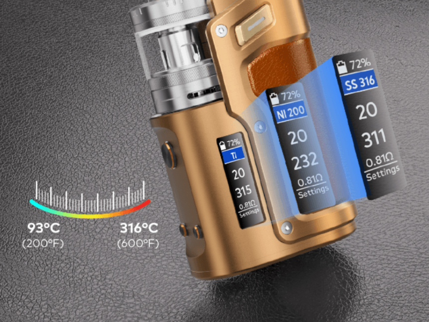 За алюминиевыми стенками скрывается надежная плата DNA60C с обновленным цветным интерфейсом. Мощность на выходе регулируется в диапазоне от 1 до 60 ватт. Кроме того, доступен температурный контроль, а также режимы: Locked mode, Stealth mode, Power Locked mode и Resistance Lock. Сопротивление варьируется в пределах от 0,1 до 3,0 Ом. В качестве источника питания используется внешний аккумулятор формата 18650 . Зарядка производится через USB Type-C током 1А.