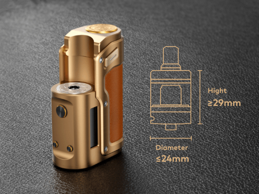 В паре с модом идет коренастый необслуживаемый бак Zenith M с посадкой в 24 мм и емкой сменной колбой. Заправка осуществляется сверху, через отверстия под скручивающейся крышкой. Обдув настраивается при помощи вращающегося кольца у основания цилиндра. В запасе имеются два испарителя из серии Z-Coil с сопротивлением 0,3 и 0,8 Ом.