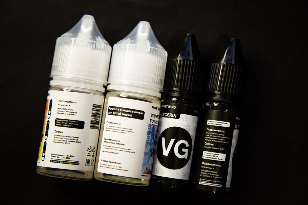 Автор ViVA la Cloud попробовал линейку Frost Wind. Она представляет собой конструктор, состоящий из аромамикса и глицерина, а также насчитывает тридцать два сочетания, покрывающих практически всю вкусовую палитру.