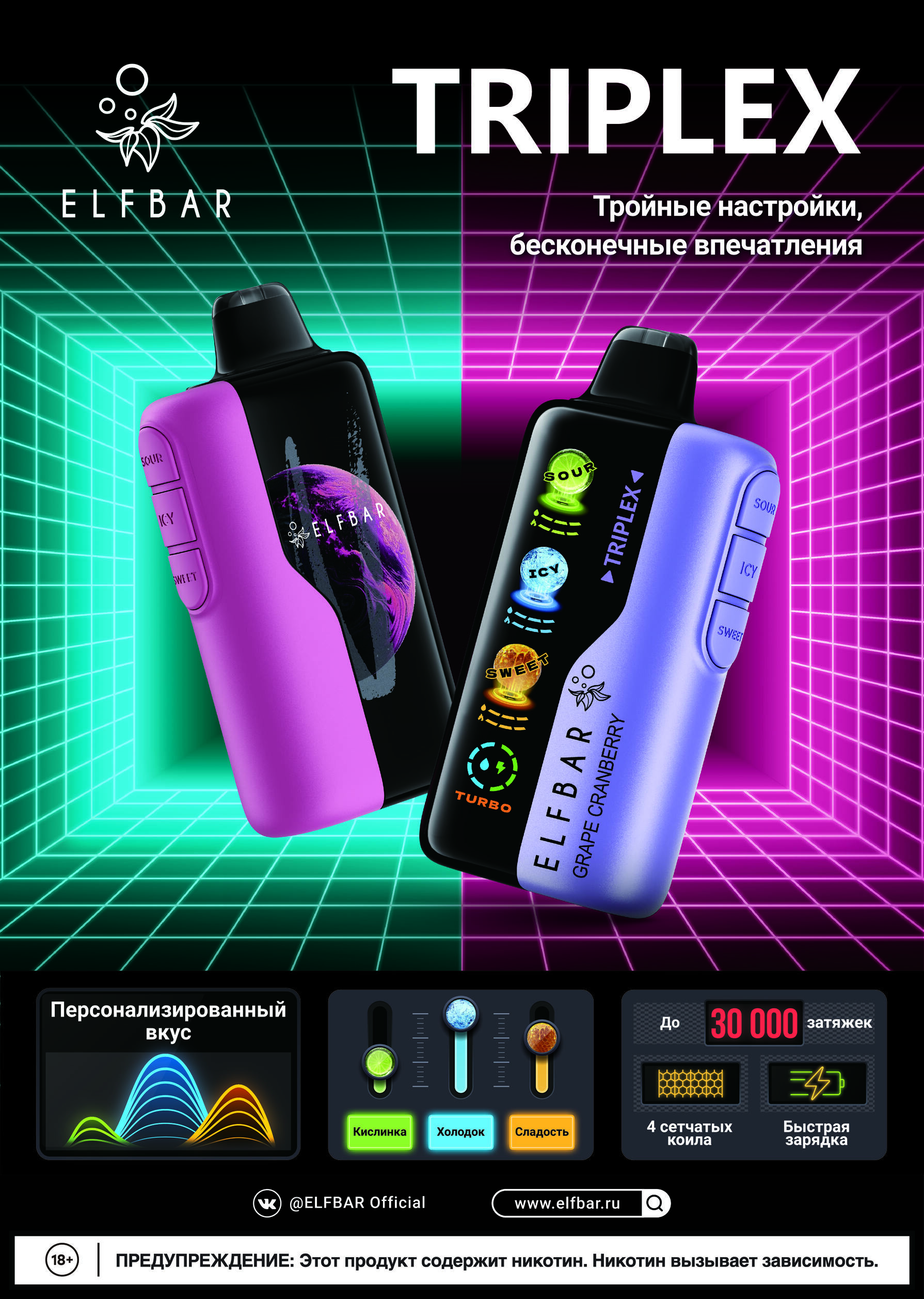 Являясь мировым лидером в индустрии вейпинга, с индексом потребительского доверия 28% и высокой лояльностью среди совершеннолетних пользователей, ELFBAR представляет своё одноразовое устройство нового поколения — ELFBAR TRIPLEX.